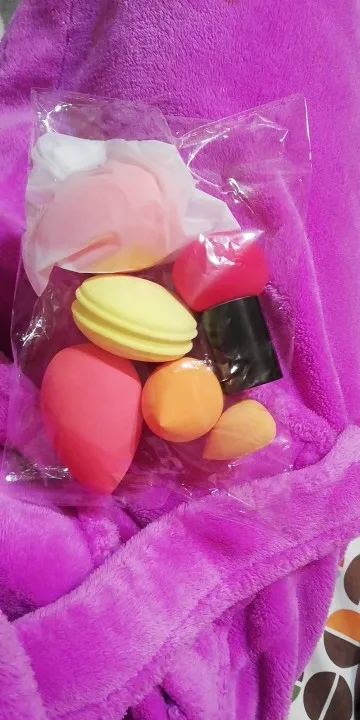 По количеству пять, по цветам соответствуют. Каждый спонж в индивидуальном пакетике, удобно. При вскрытии чувствуется запах, но исчезает буквально за пару часов (или если промыть с умывалкой). Со своей задачей справляется, тоналка и консиллер наносятся без проблем.