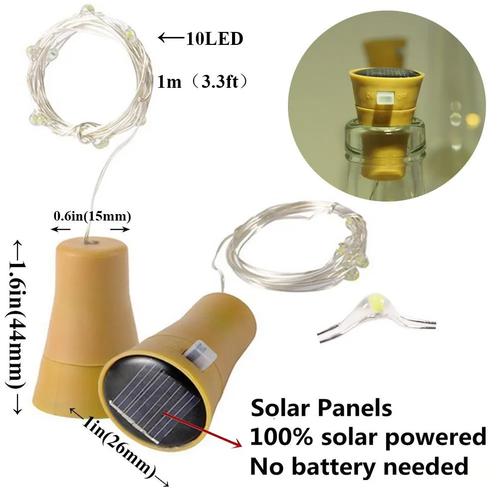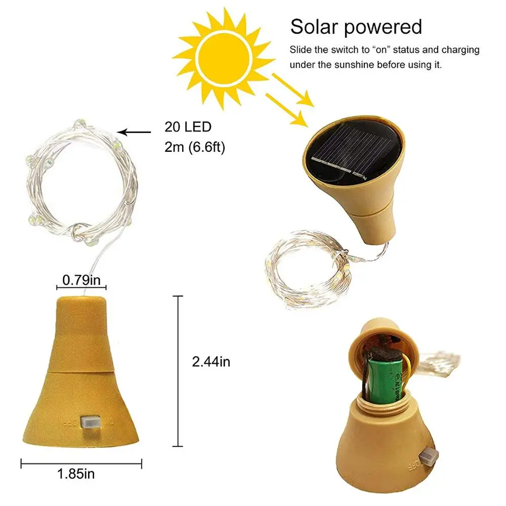 На солнечных батареях светильники-пробка, идеальна для позиционирования огни для любого декоративного или праздничного проекта.Создайте романтическую атмосферу без каких-либо сложных условий.Идеально подходит для стола, комнаты, патио, свадьбы, вечерние, рождественские, новогодние и другие праздничные украшения.