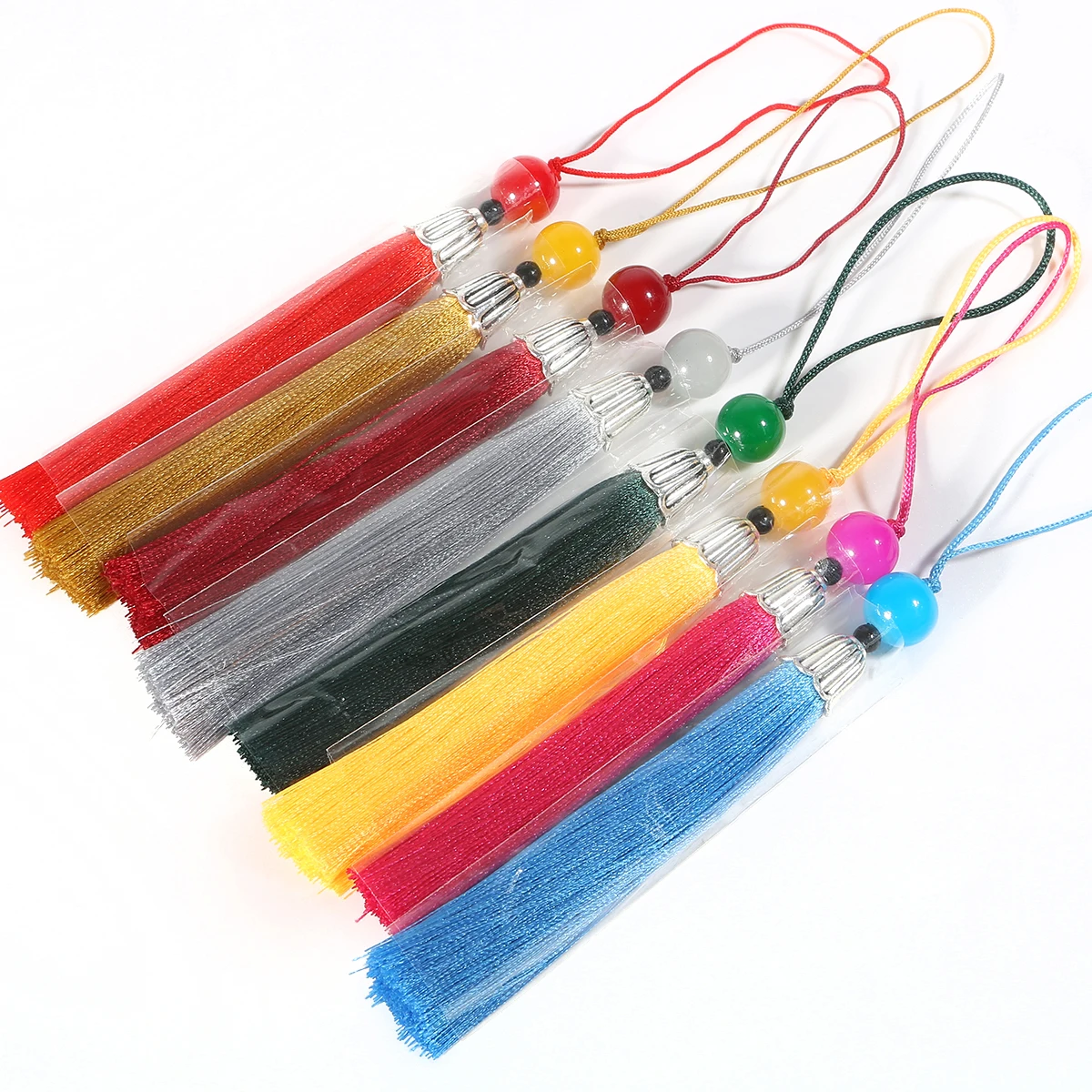 Цветные бусины из хлопка и шелка 1-2 шт., бусины с кисточками, металлическая шапочка, изящная подвеска, сатиновые кисточки для рукоделия, брелок для ключей, аксессуар для одежды