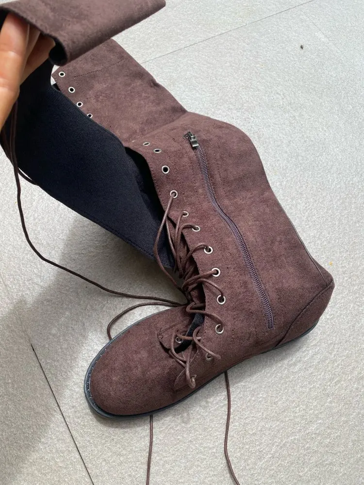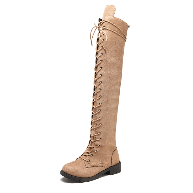 Женские ботфорты на шнуровке, высокие сапоги на платформе и Плоском Каблуке, готическая обувь, весна-осень 2022