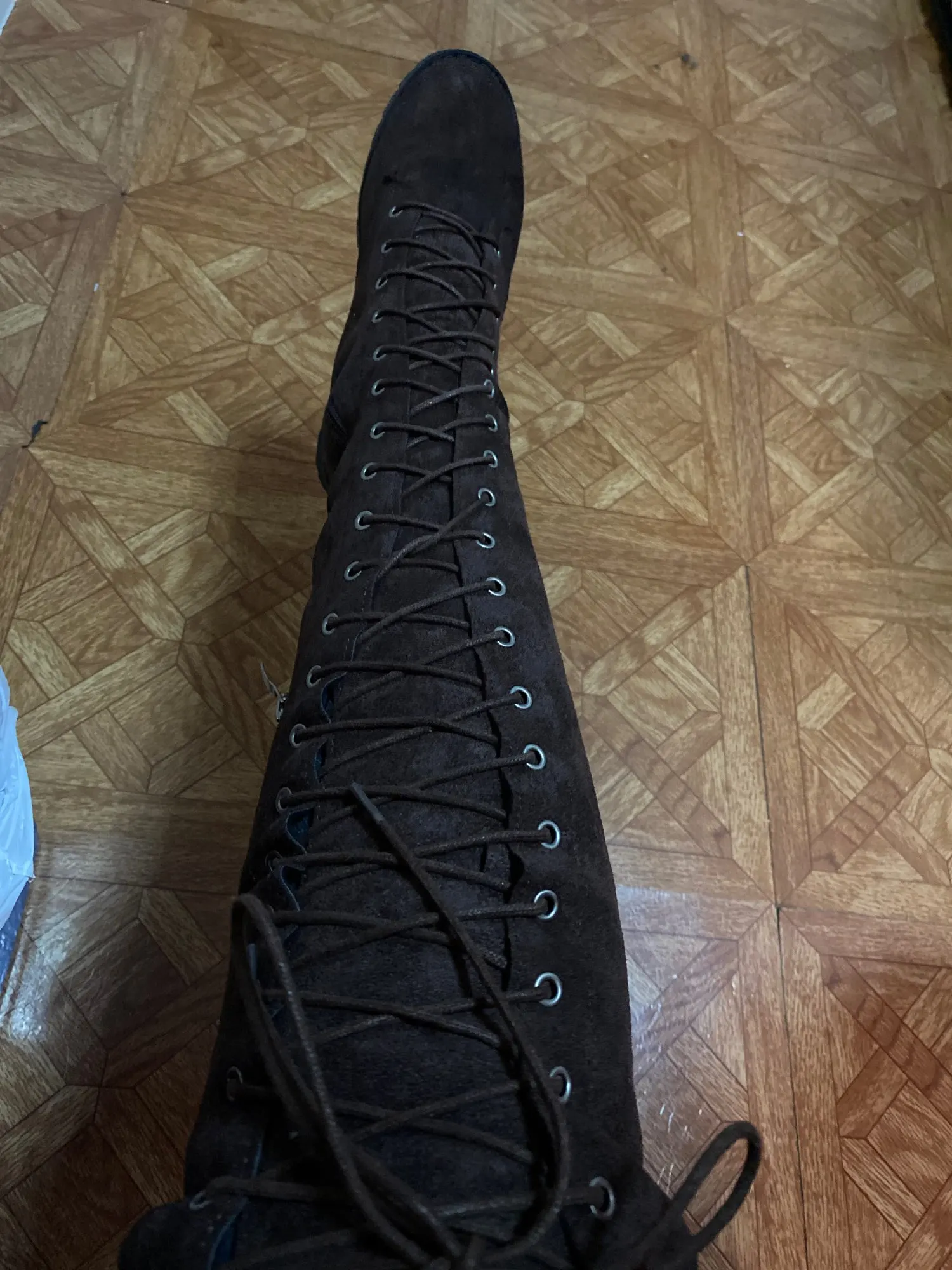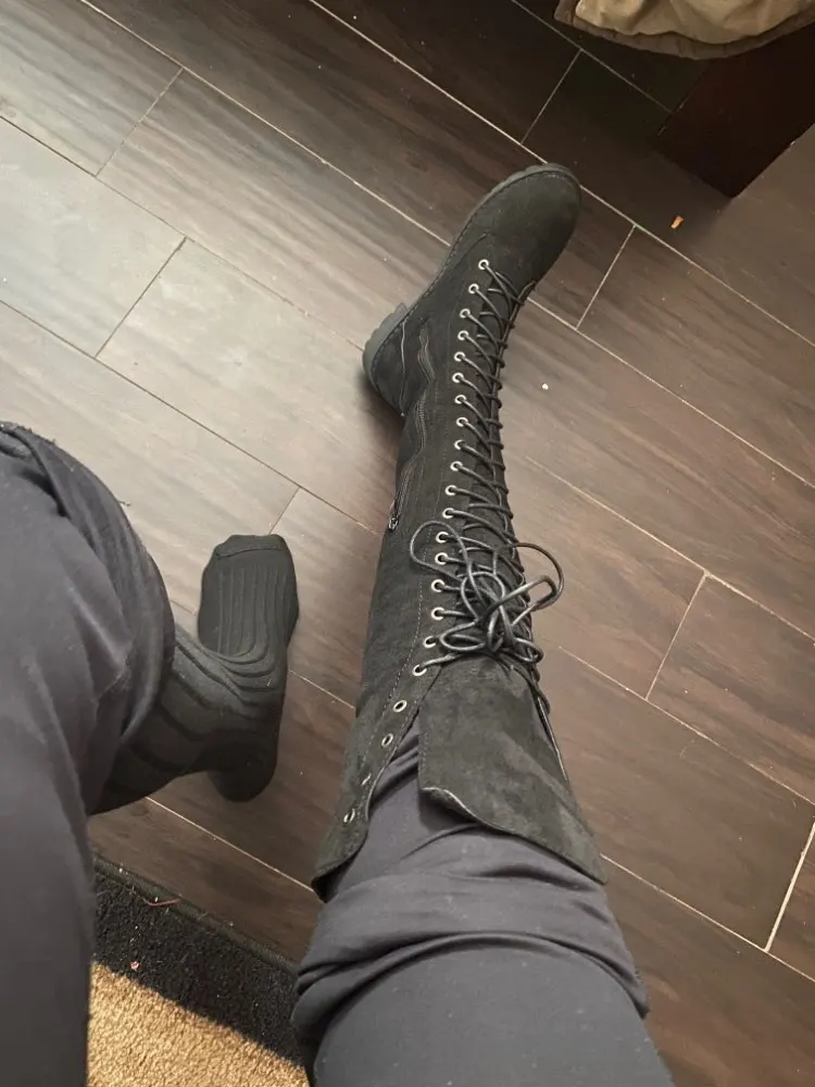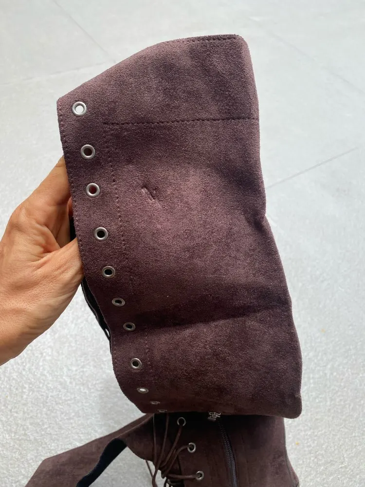 Эти ботинки отличного качества и сделаны хорошо. Theyre искусственная замша, но это нормально. У меня уже есть пара черного цвета, которую я использую все время и получаю много комплиментов. Я опрыскивал сапоги замшевым/обувным уплотнителем, который держит их чистыми и сухими под умеренным дождем. Я думаю, что я мог бы заказать размер или два слишком большого, но плохо, просто добавьте дополнительные подошвы. У меня длинные ноги, и эти сапоги доходят до середины/чуть выше колен. Они немного меньше, чем на фотографиях. Они прекрасно смотрятся! Продавец был очень полезен с проблемой, которая у меня была, и был так любезен, чтобы перейти ко многим дополнительным срокам, чтобы помочь мне решить эту проблему. Большое спасибо за ботинки и вашу помощь! 100% рекомендуемый продавец и ботинки!