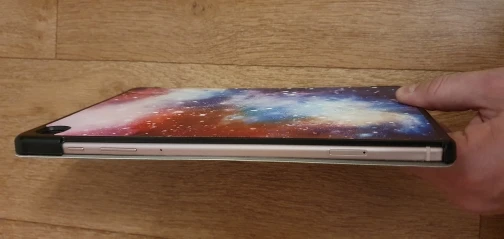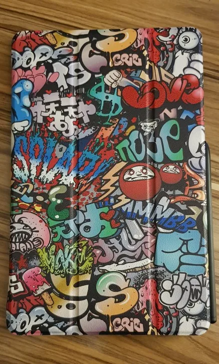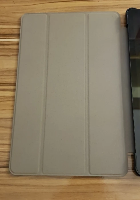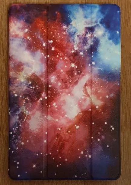 Отличный чехол. Подошел идеально. Все входы и кнопки подходят. Плотныф, яркие цвета. В подарок пришло стекло (наклеили, его не заметно, отклик не поменялся). Держатель и чехол под стилус. Не пробовали, так как не пользуемся. На Сахалин шел долго. Минус, не складывается в подставку.