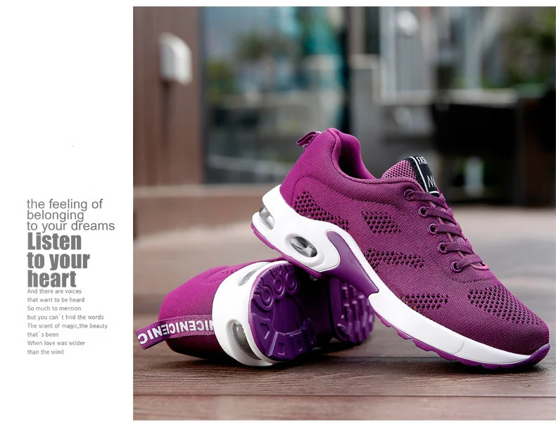 Женская обувь для тенниса с воздушной подушкой; Цвет фиолетовый; Zapatos Mujer; Дышащие сетчатые кроссовки на шнуровке; Мягкая женская спортивная обувь для бега