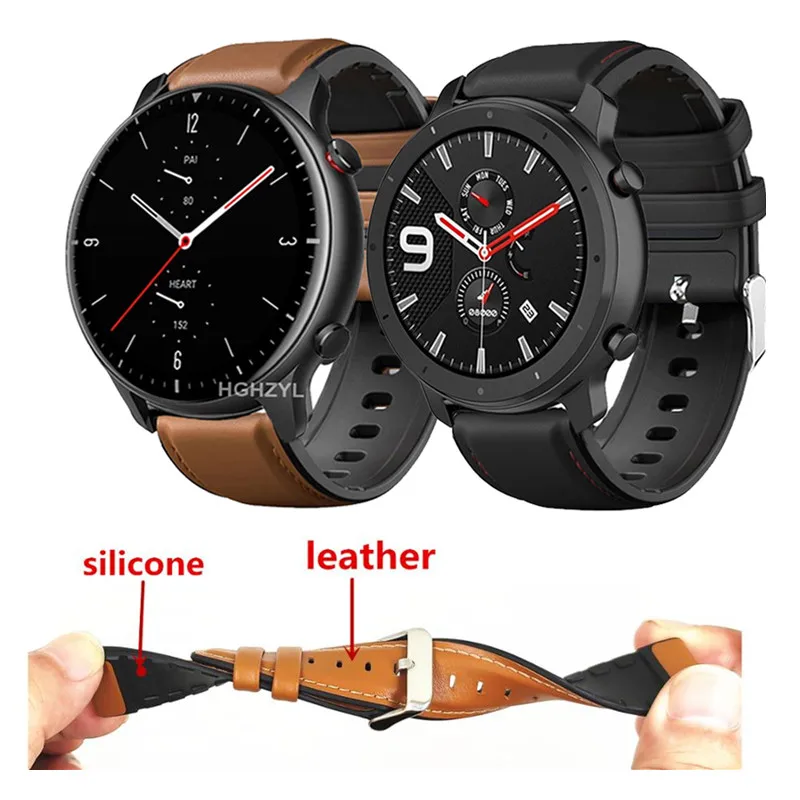 Ремешок кожаный и силиконовый для часов Amazfit GTR2 47 мм Pace Stratos 3 2, браслет для Huawei Watch GT Honor Magic Correa