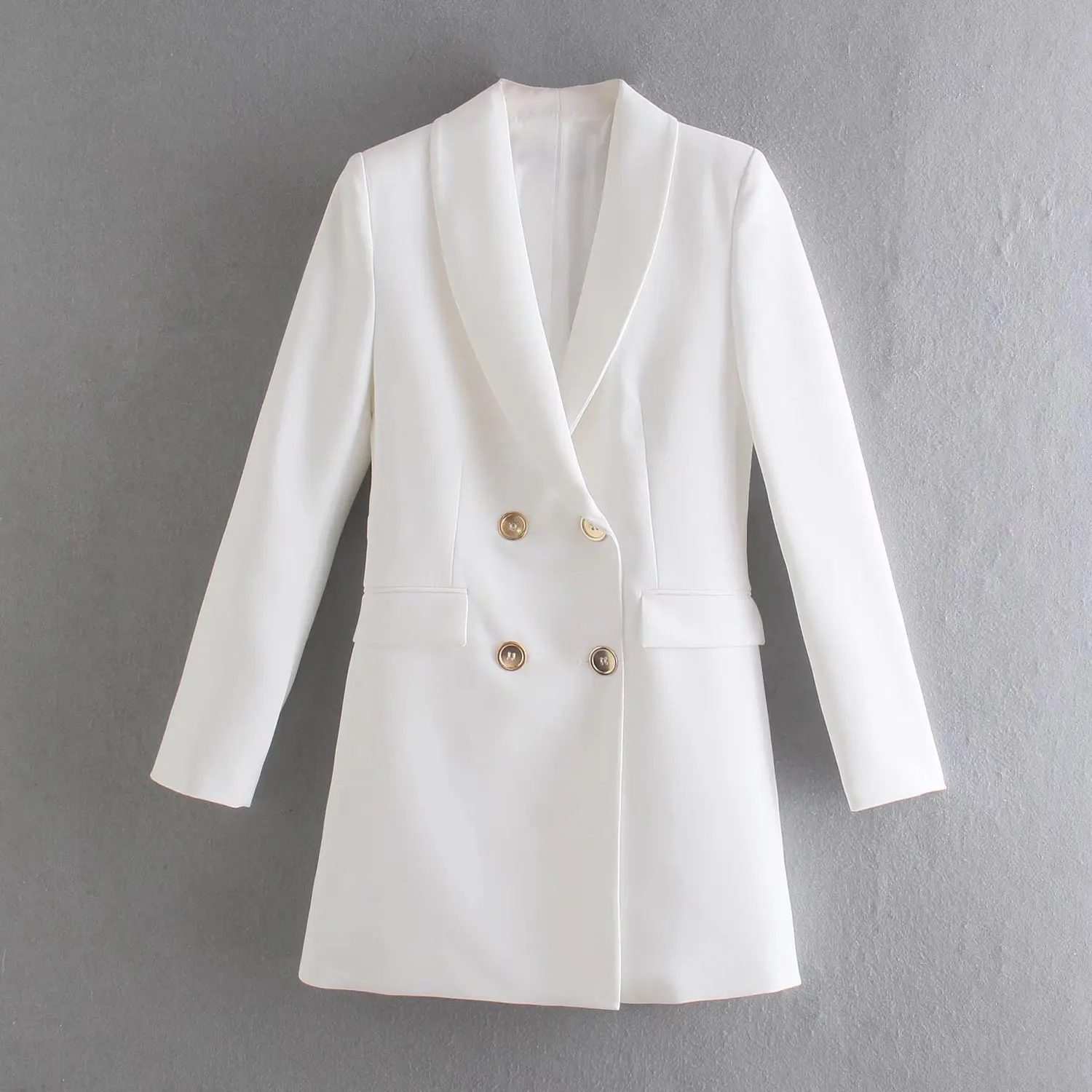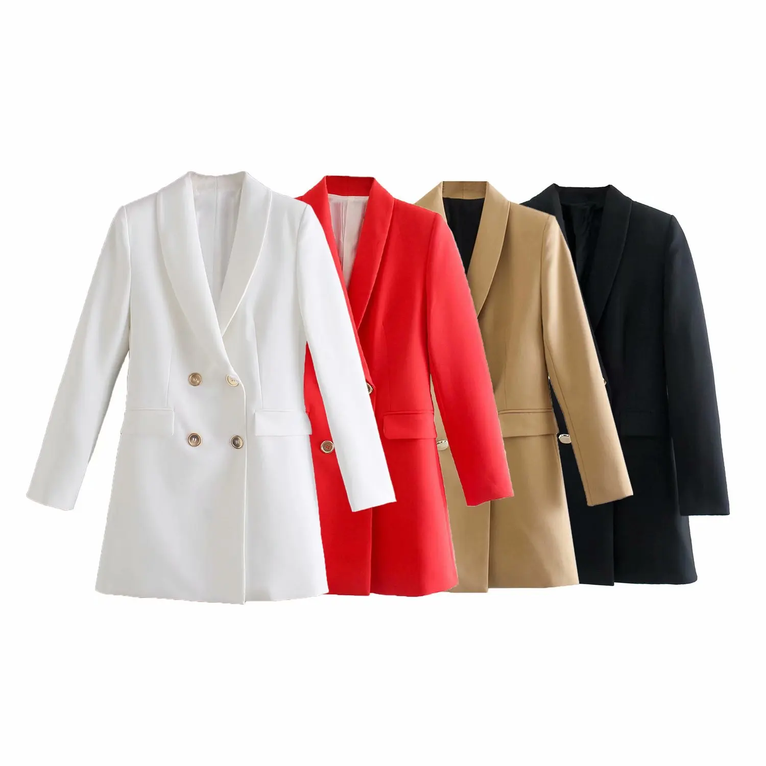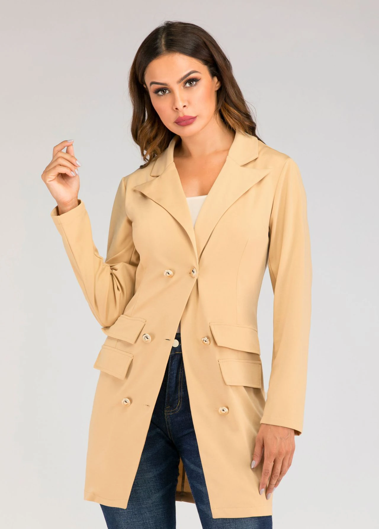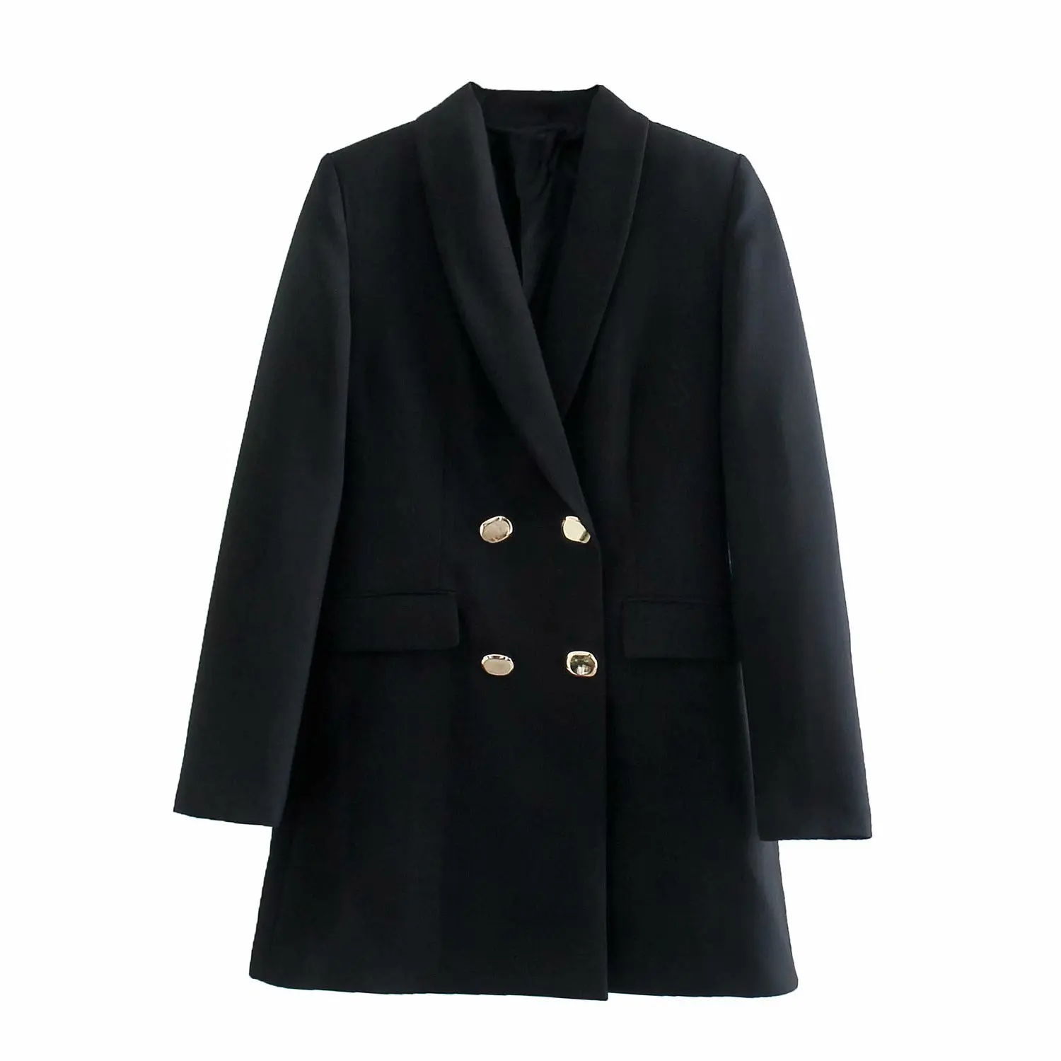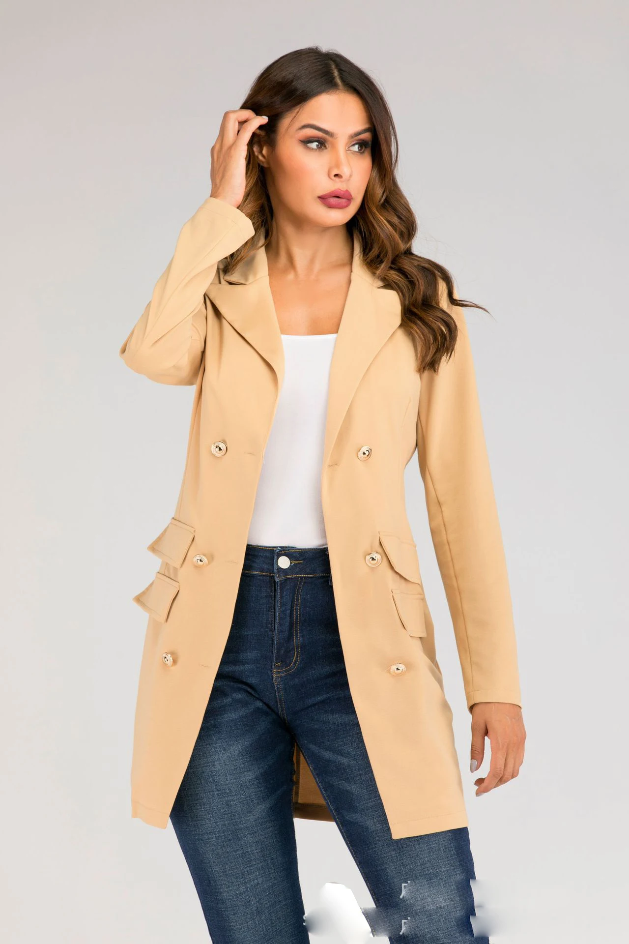 Женский офисный блейзер с карманами, повседневный двубортный длинный пиджак с длинным рукавом, Осень-зима