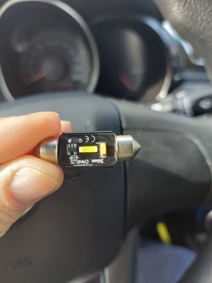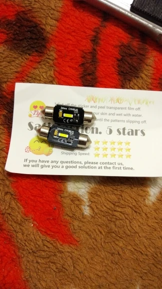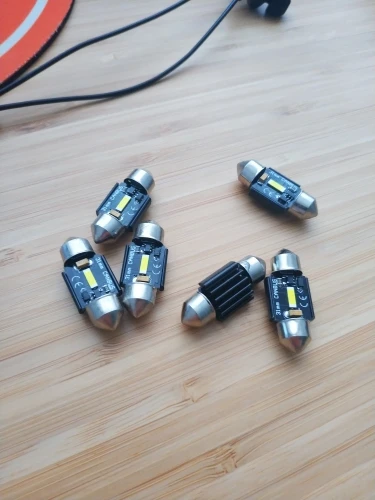 Заказывал 2 лампы 39 мм в салон. Очень яркие, как днём. Одна не горит, для продавца сделал фотографию с рабочей лампой ( на фото лампа моя старая из плафона). Думаю, с продавцом проблем не будет по замене. Очень сильно греются. для салона пойдет, если ставить в подсветку номеров, то лучше немного доработать.