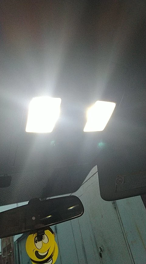 доставка за две недели в тульскую обл. И так покупал для Nissan X-Trail T31. ширина лампы 31мм больше не влезит. С упаковки стоит задающий ток резистор на 680mOM(0,68ом) лампы прилично греются при этом и ток потребления при 14.3-14.5В состовляет 0.22А. Перепаиваем резистор на 1.3ом , тем самым занижаем подающий ток в два раза и получаем хорошую яркость и стабильный нагрев в районе 55градусов потребление ламп при этом падает до 0,08А работать будут вечно, при 20минутном тесте рука держит нагрев радиатора .для сравнения фото с галогеном в салоне светят оч ярко особенно в передних плафонах. Плавное затухание присутствует.