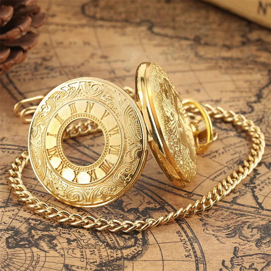 Классические кварцевые карманные часы с римскими цифрами на цепочке