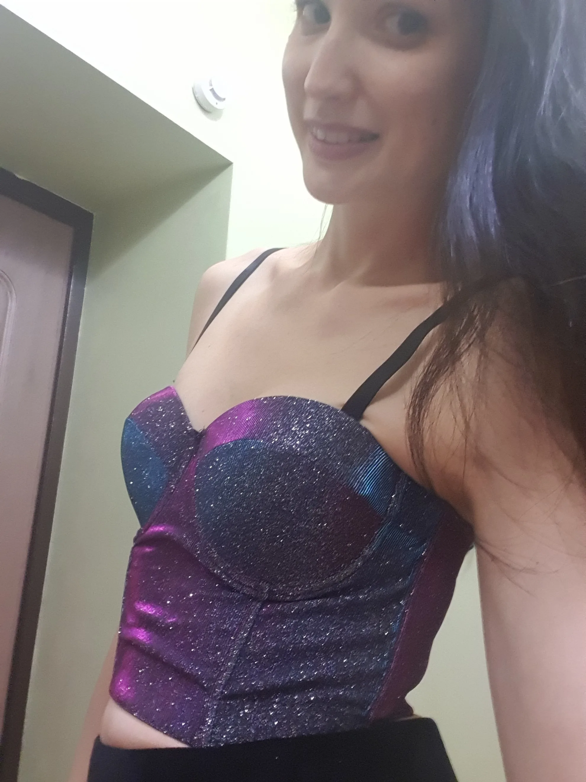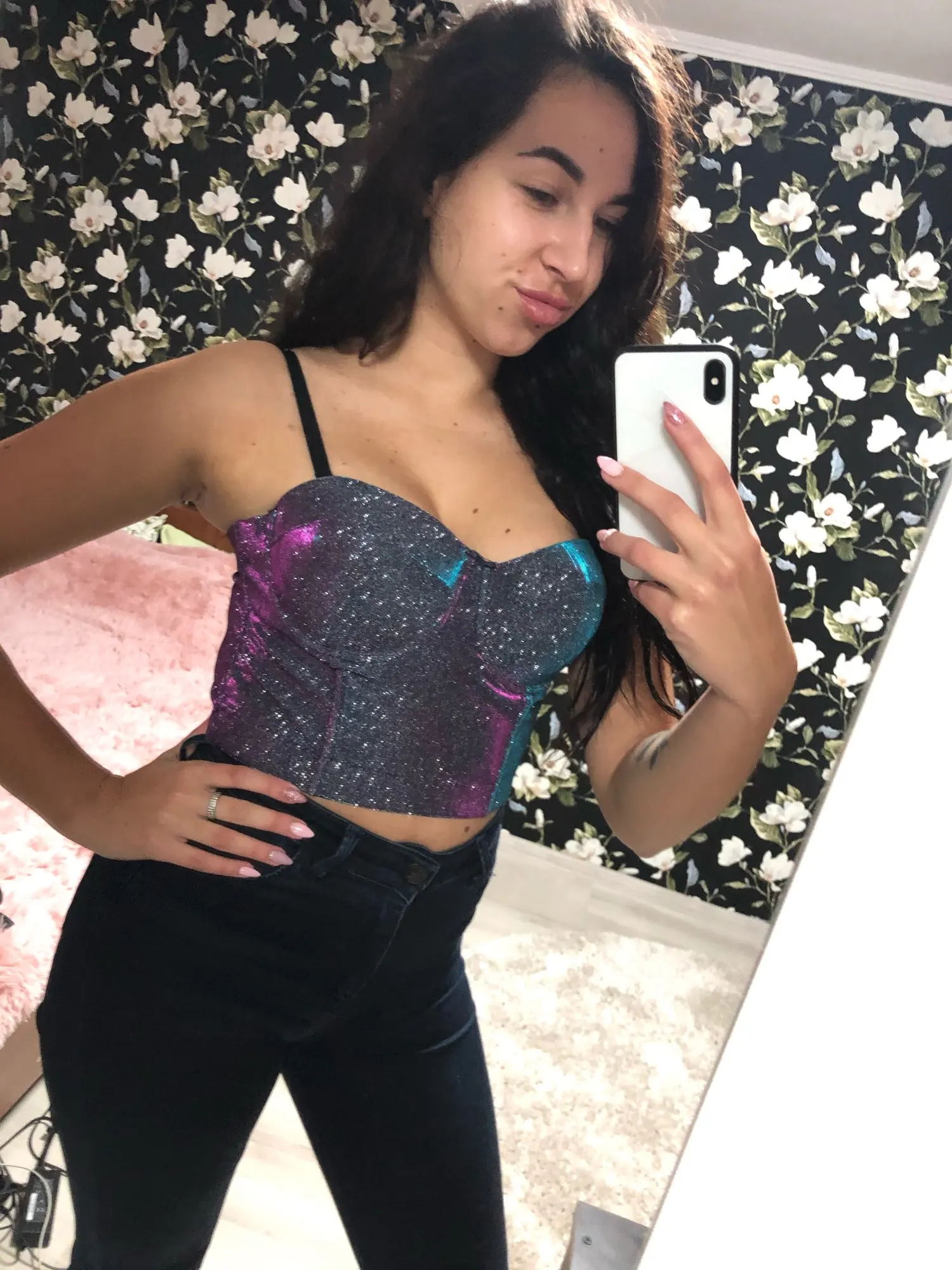 пришло быстро, топ сшит хорошо, ткань блестит, я чуть промахнулась с размером, но это надо похудеть мне.