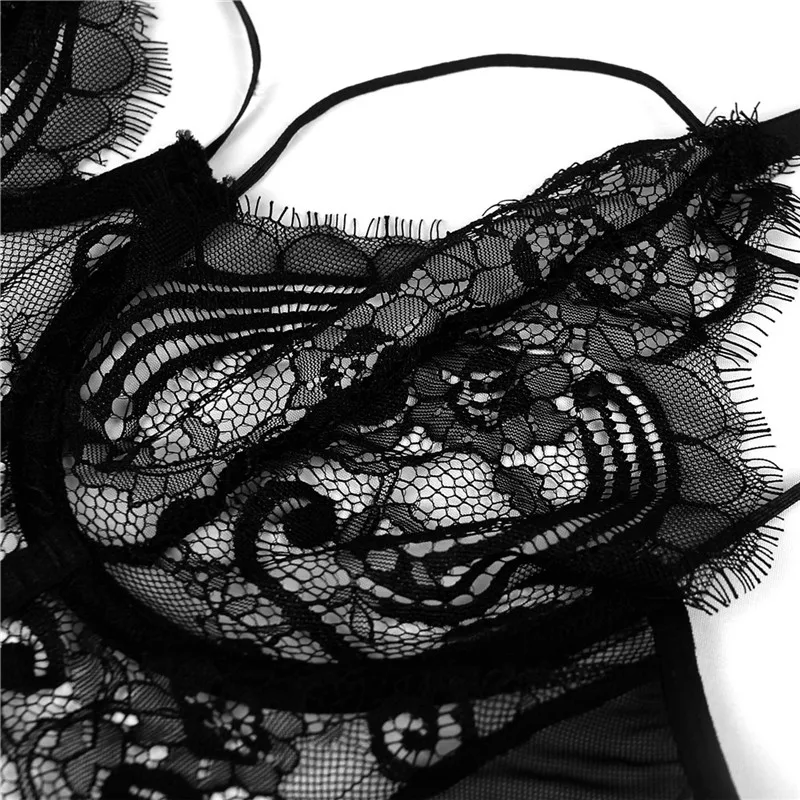 Черный кружевной комплект с бюстгальтером, женский прозрачный бюстгальтер + женское сексуальное нижнее белье, эротическое нижнее белье, красная лента RS80804