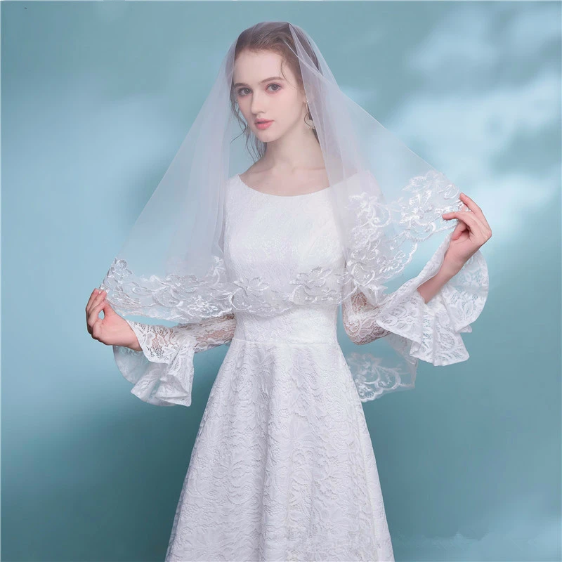 Фата свадебная короткая с кружевом, Длинная фата для невесты, с аппликацией, 2019, в наличии, Белый слоновой кости красный, цвета слоновой кости, 1,5, 3 м