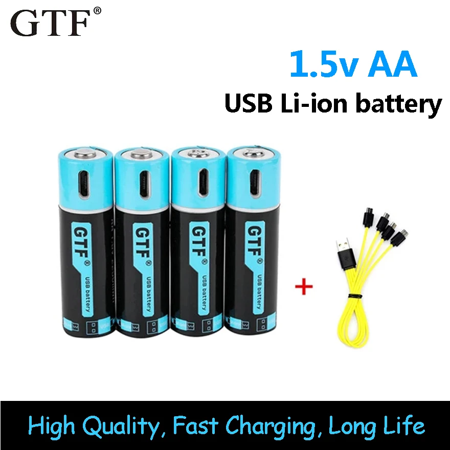 Оригинальная Аккумуляторная Батарея GTF 1,5 в AA 14500 МВтч USB AA, перезаряжаемая литий-полимерная батарея для пульта дистанционного управления мышью, маленького вентилятора, электрические игрушки