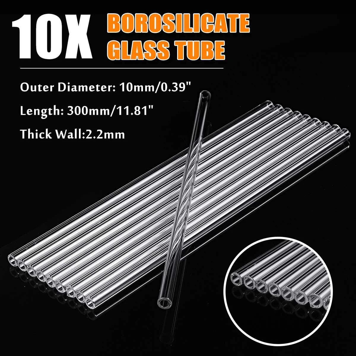 Трубка лабораторная с толстыми стенками, боросиликатное стекло, выдувная трубка для школы, химических экспериментов, 10 шт., 300 мм, OD 10 мм, 2,2 мм