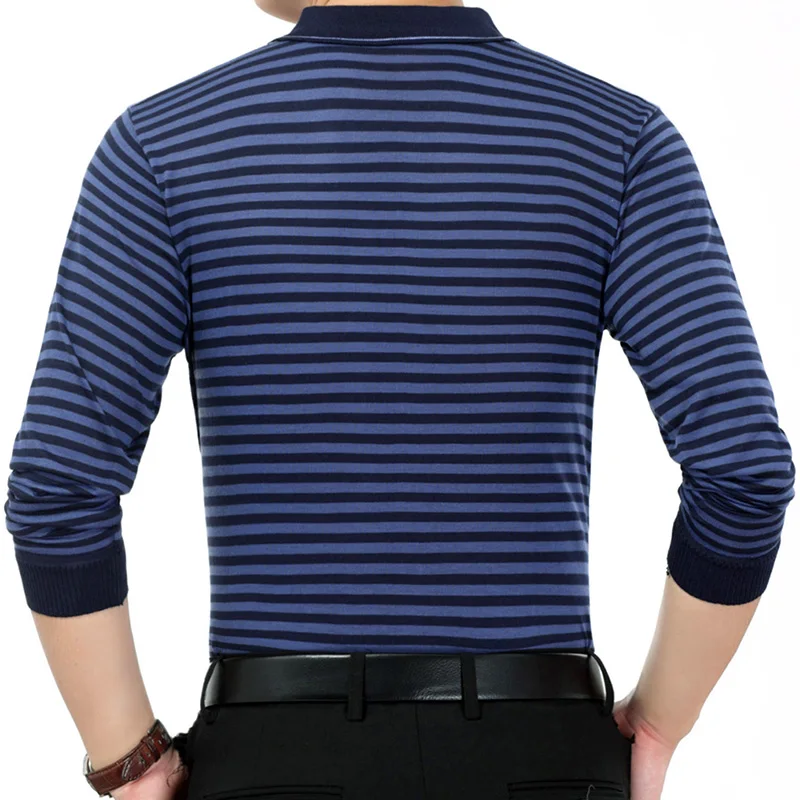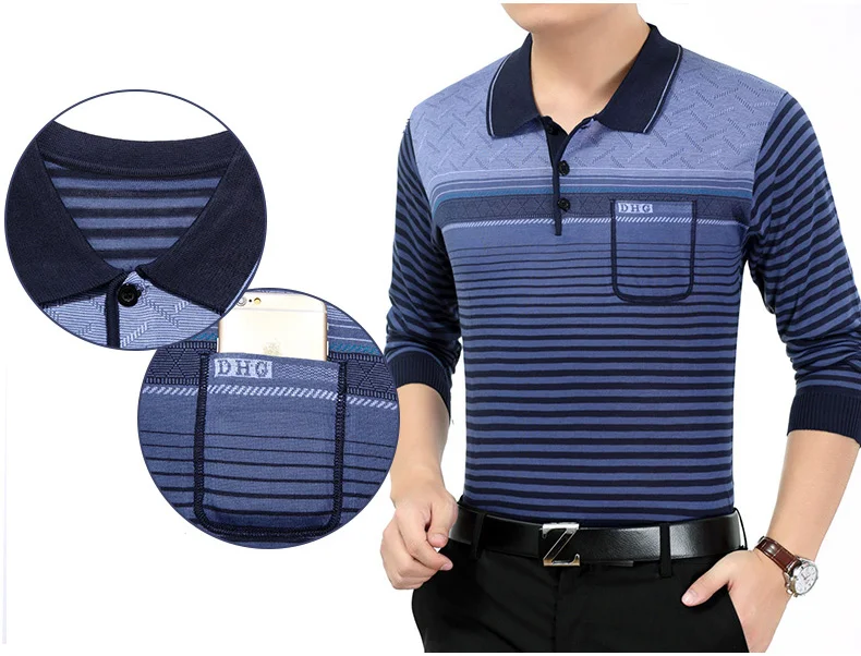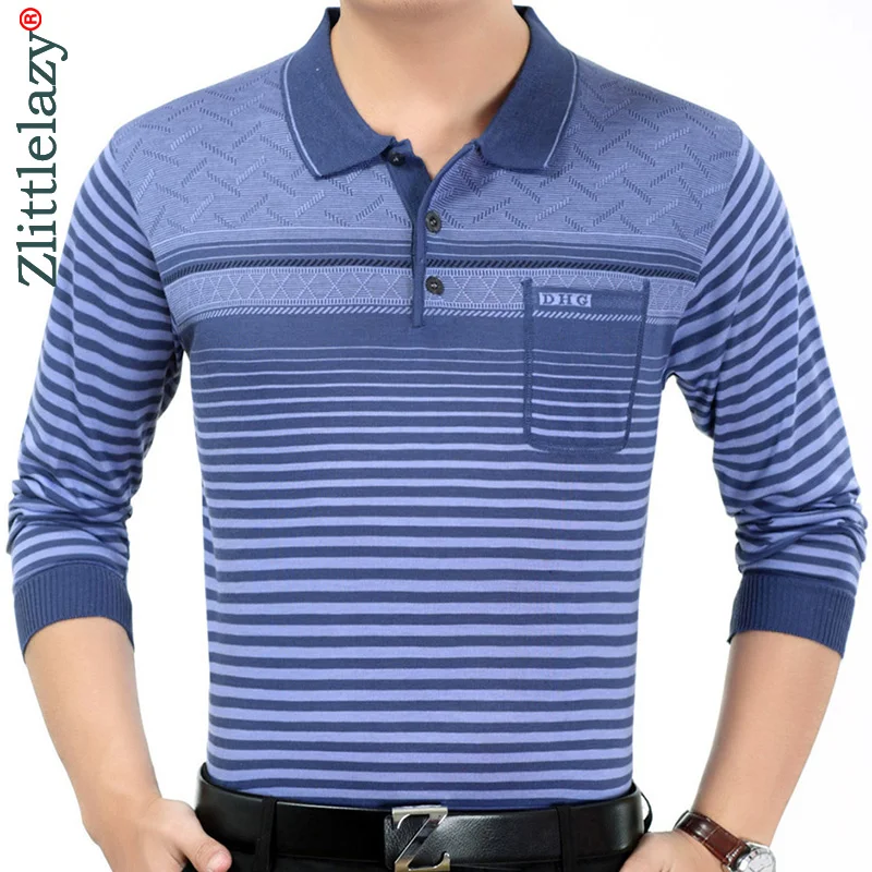 Футболка-поло мужская повседневная в полоску, рубашка-поло с длинным рукавом для фитнеса, трикотажная футболка с карманами, модная одежда 2021, 90301