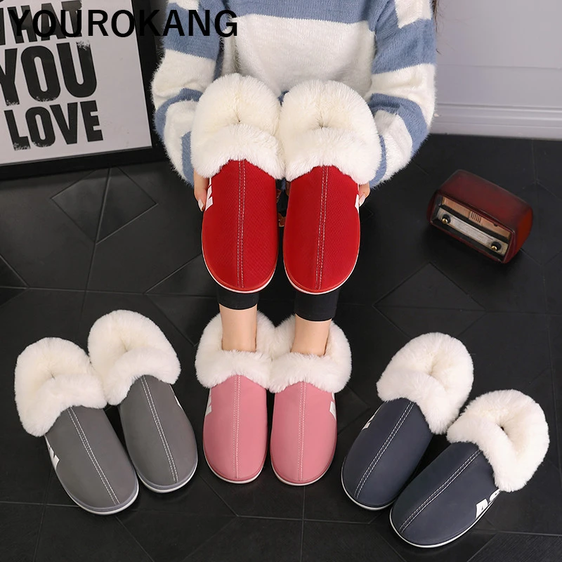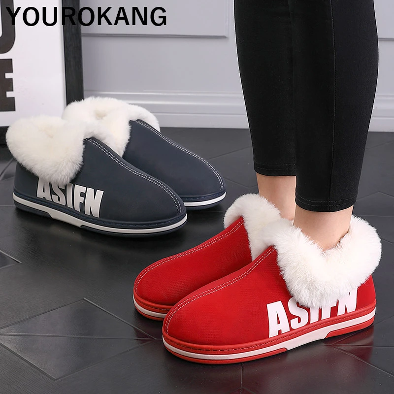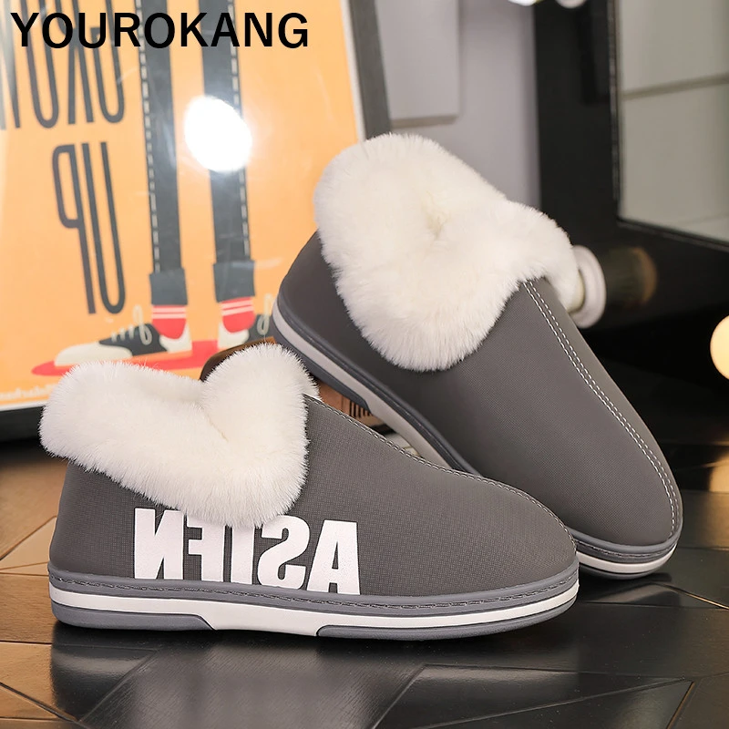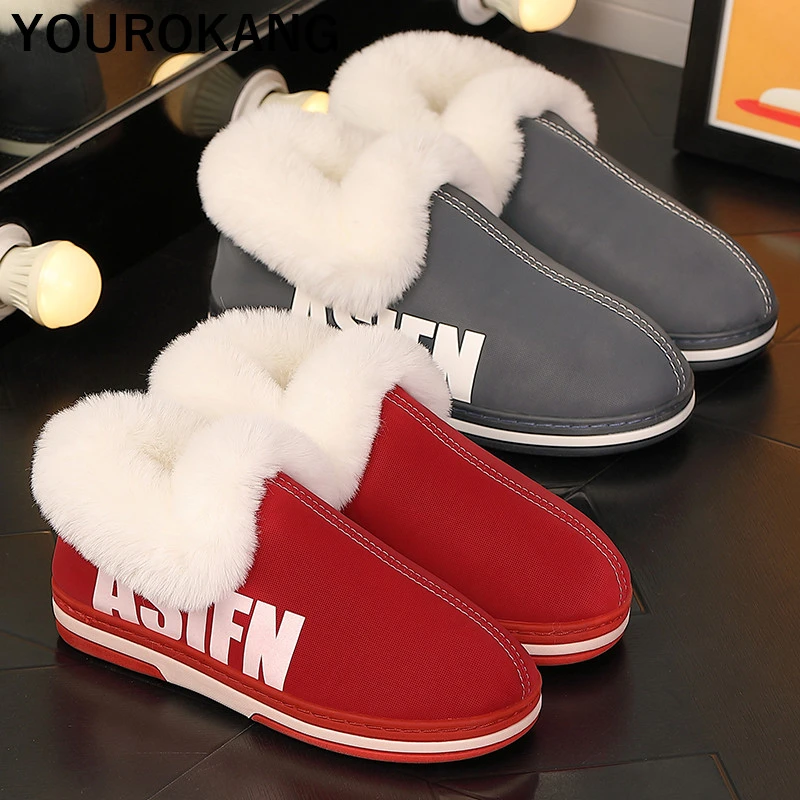 Зимняя мужская обувь, домашние тапочки, домашняя теплая плюшевая обувь, водонепроницаемые меховые тапочки унисекс, обувь для влюбленных из искусственной кожи для спальни icon star icon star icon star icon star icon star