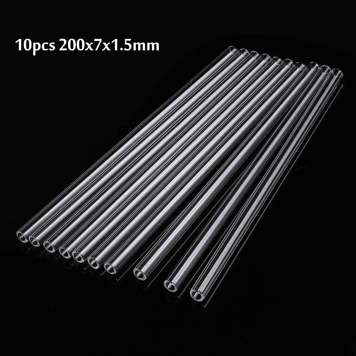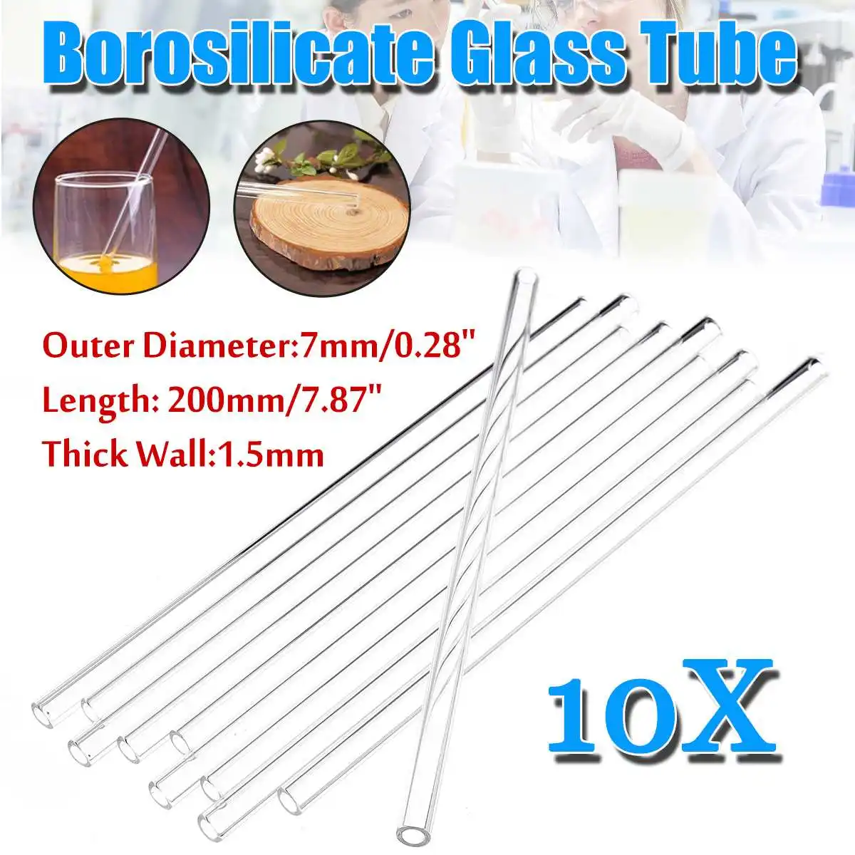 Трубка для выдувания из боросиликатного стекла, 10 шт., 200 мм, наружный диаметр 7 мм, толщиной 1,5 мм, для школьной лаборатории, химических экспериментов, лабораторных пробирок