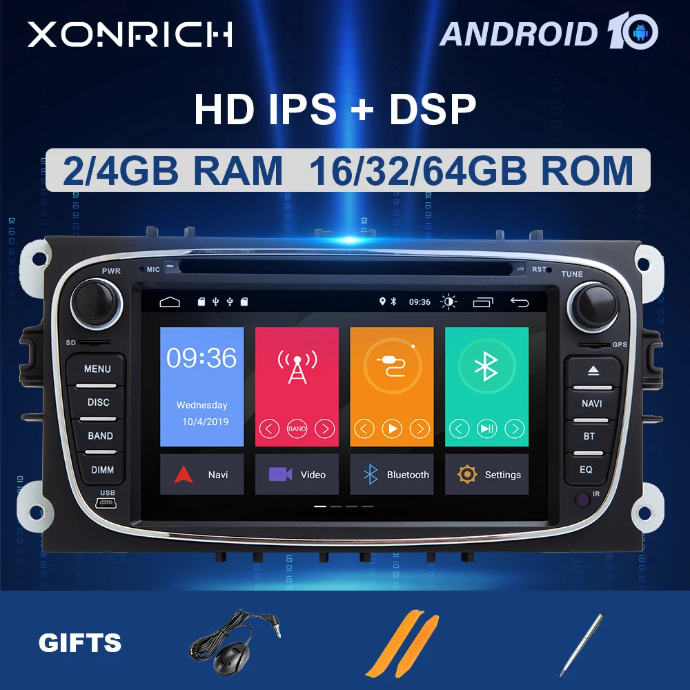 8 Core 2 Din Android 10Car радио мультимедиа для Ford Focus 2 3 mk2 Mondeo 4 Kuga Fiesta Transit Connect S-MAXC-MAX IPS DSP4G 64G