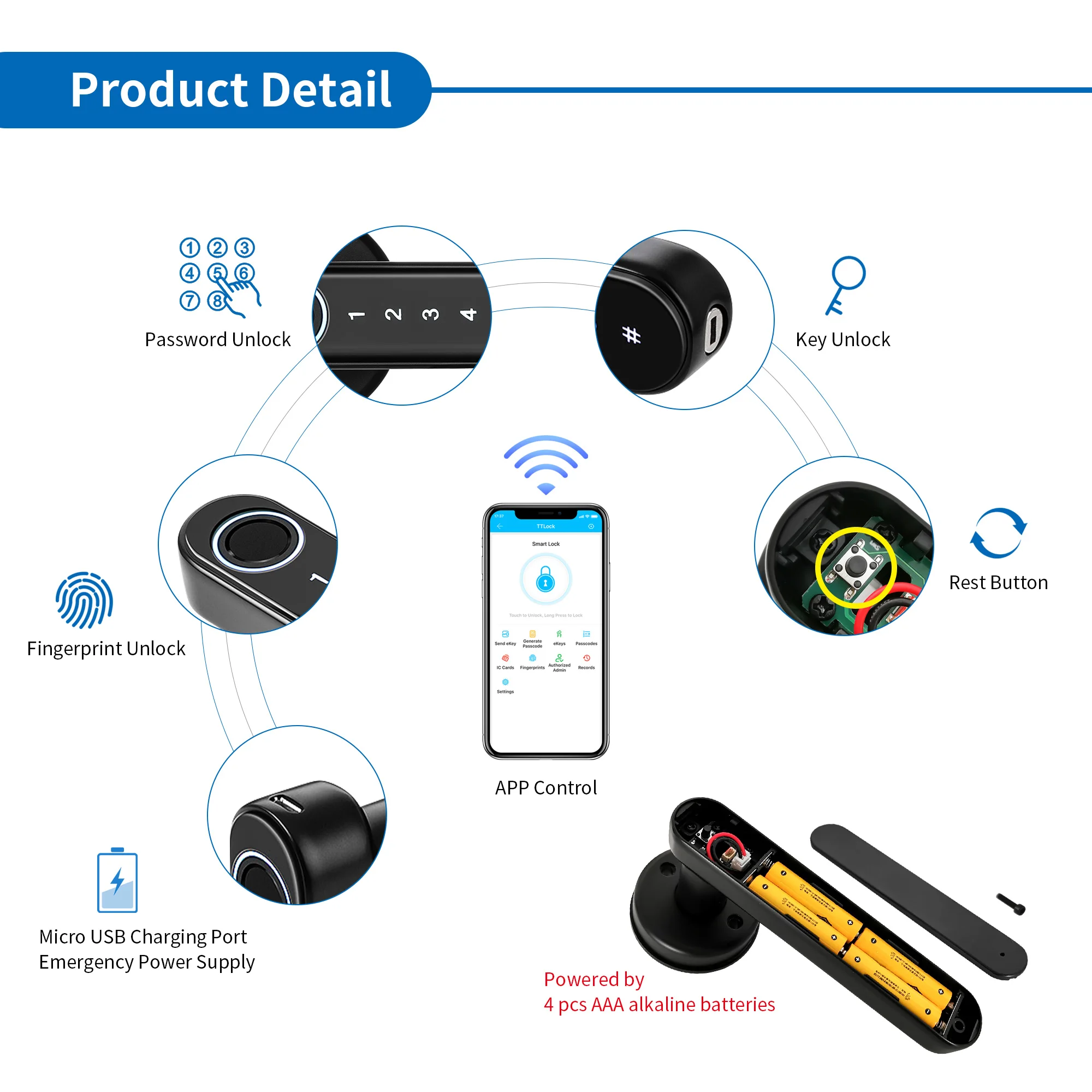 Поддержка приложения TTlock, также совместима с Alexa/ Google Home/ Smart Watch.