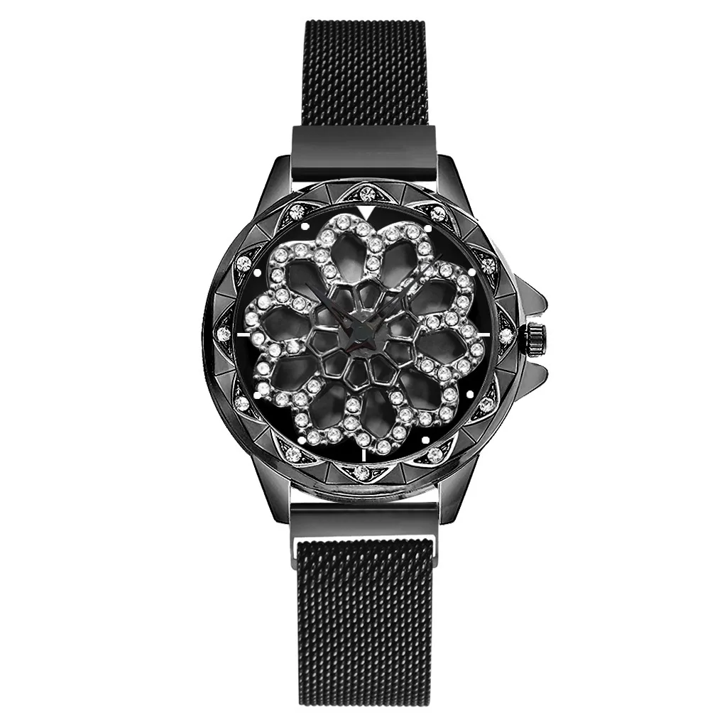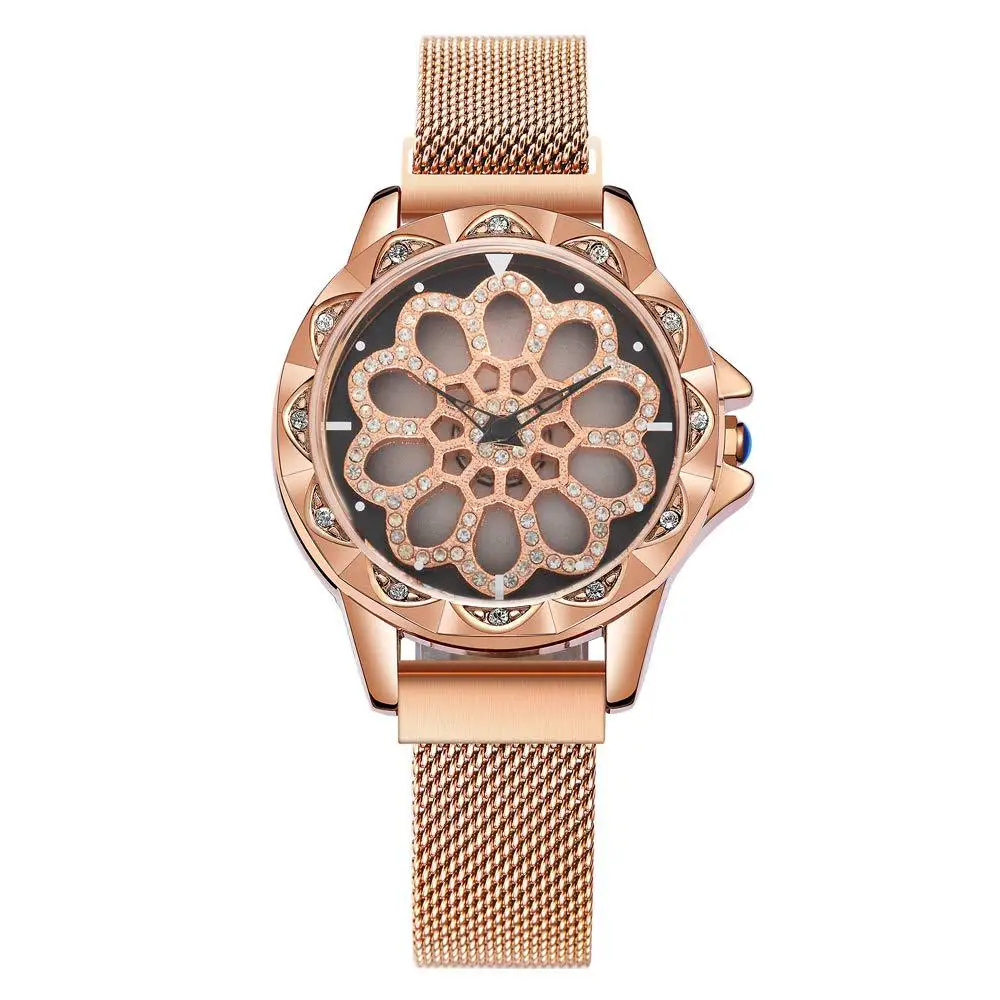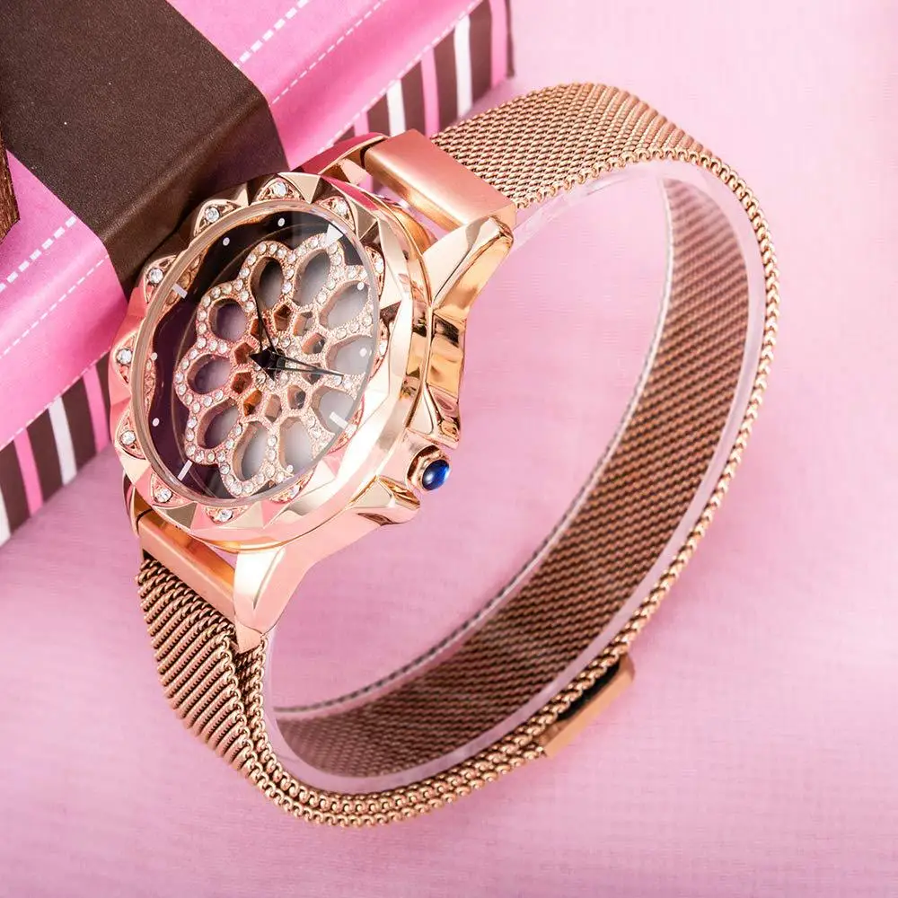 Часы наручные Lucky женские кварцевые, люксовые модные, с магнитным циферблатом, с вращающимся циферблатом, цвет розовое золото, 2019