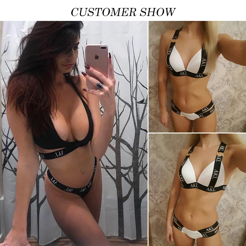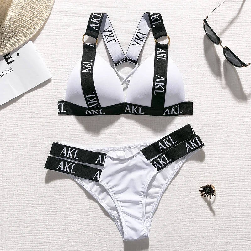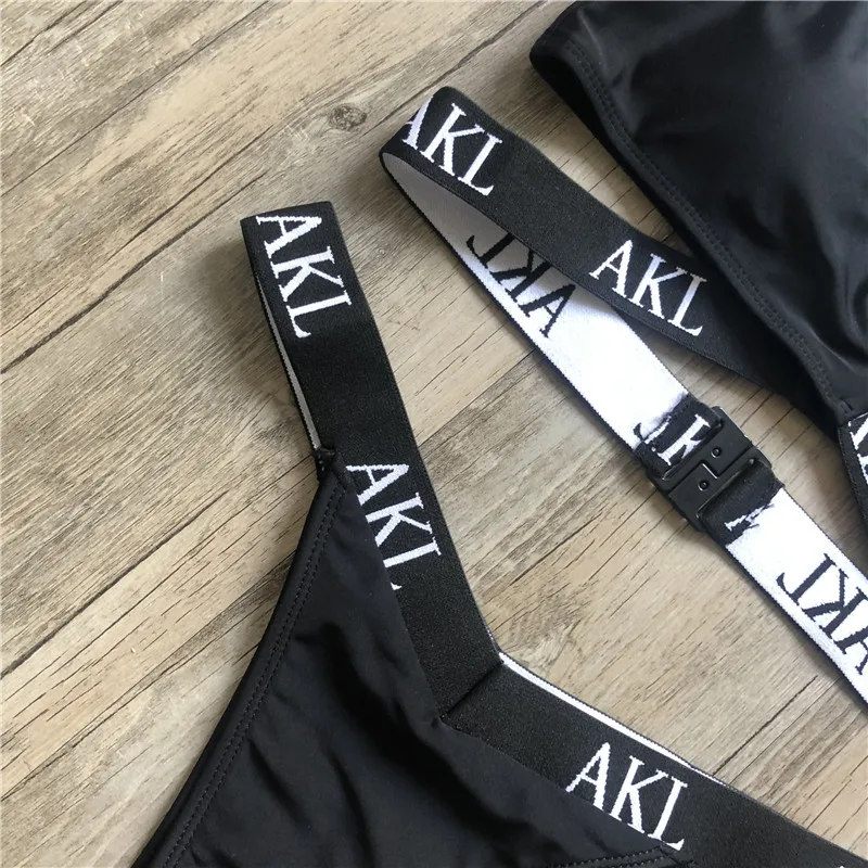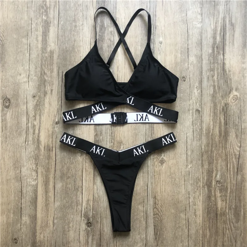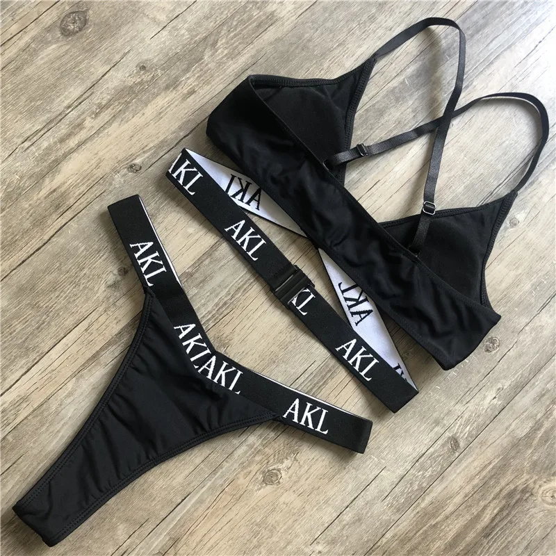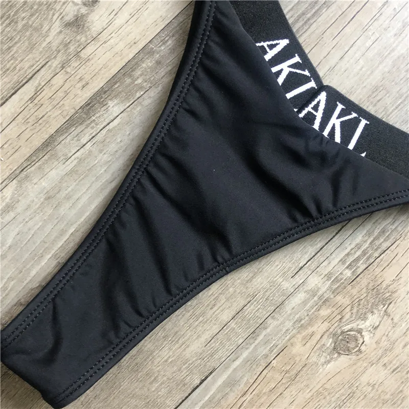 Бикини пуш-ап женское черное, купальник с принтом в виде надписи, 2020