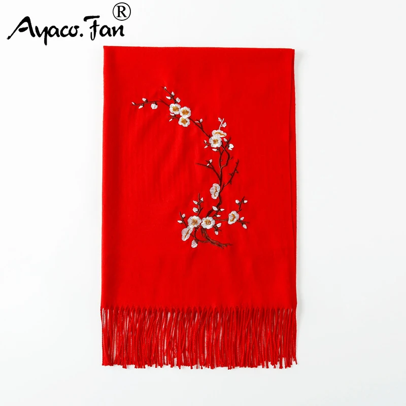 Женские кашемировые теплые шарфы с кисточками Новинка Осень 2019 однотонные длинные шарфы с вышивкой женский шарф Женская шаль Зимний Шарф