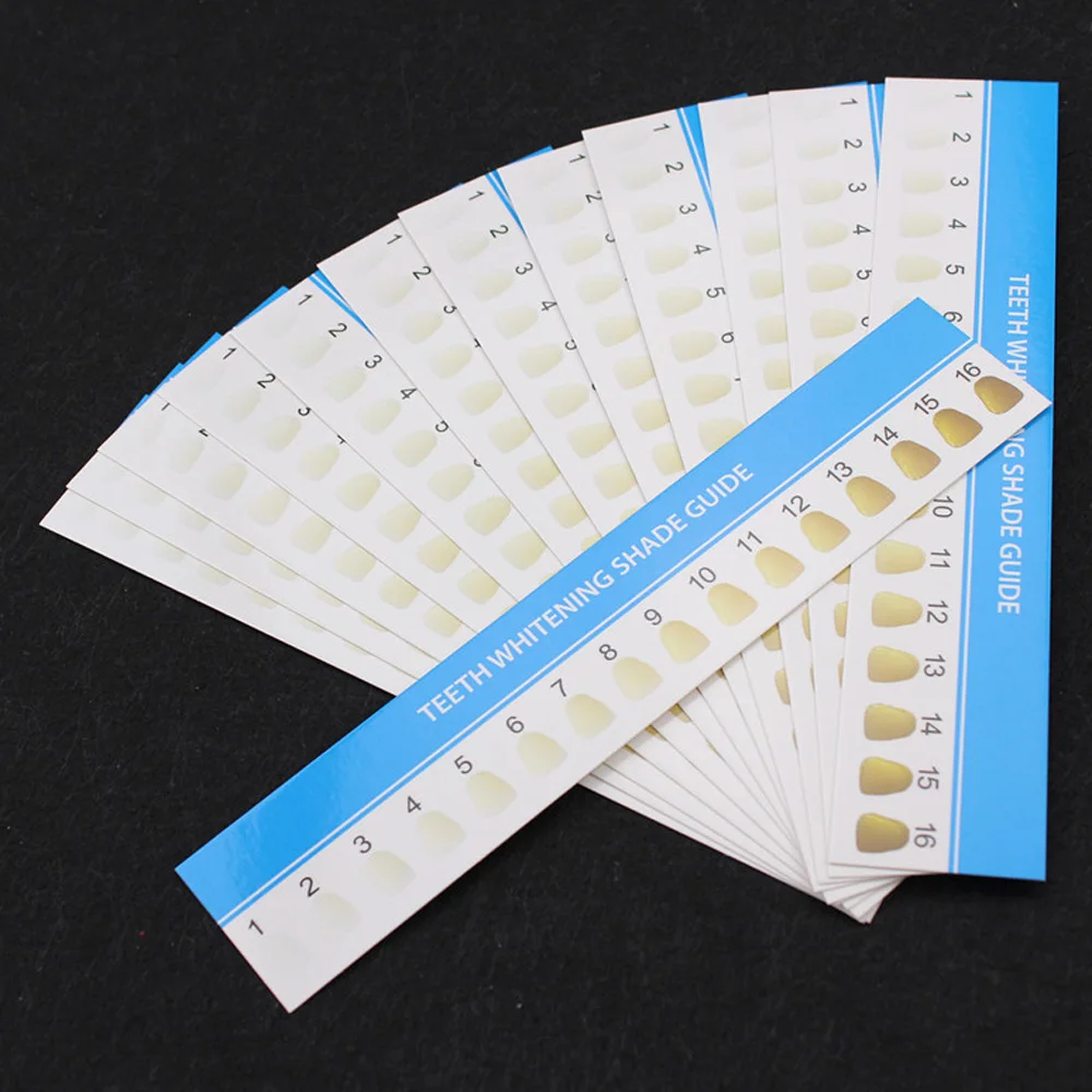 100 шт белые зубы отбеливающая бумага тени руководство 16 цветов одноразовые для зубов, зубная инструменты для стоматологического инструмента