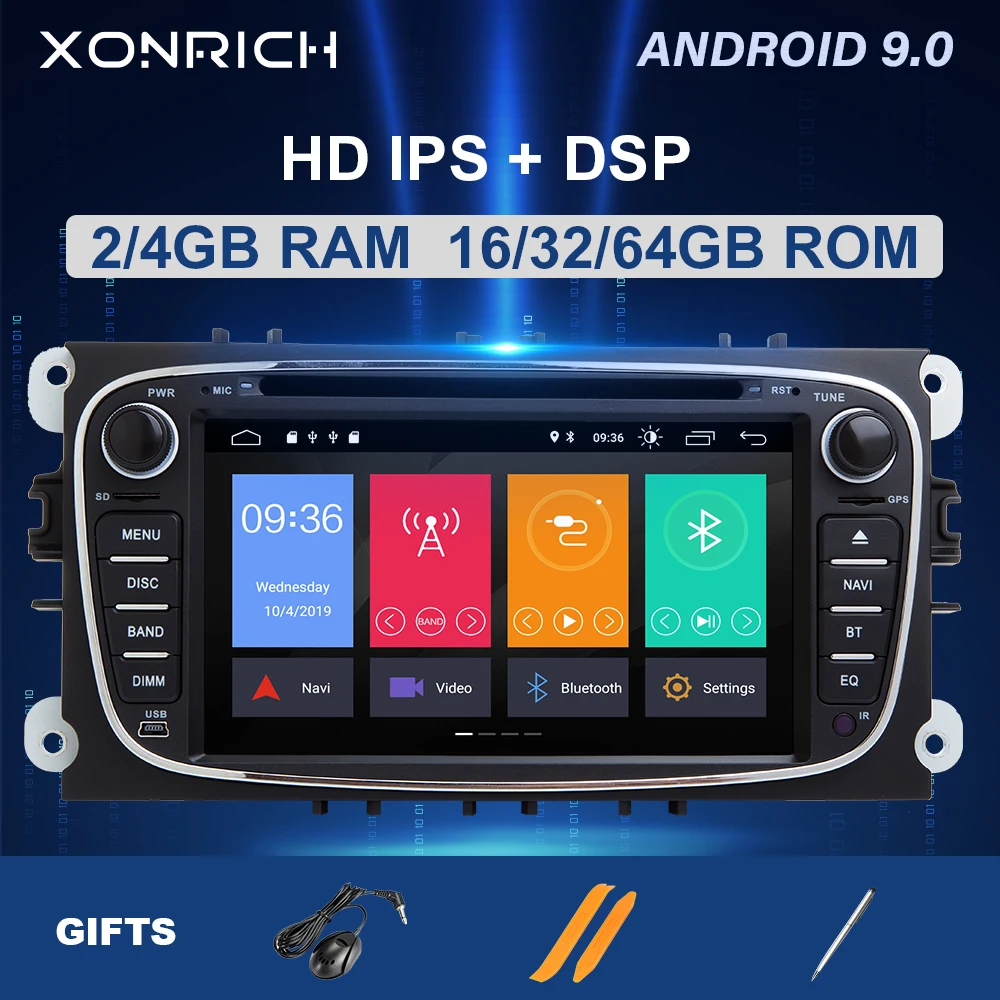 XONRICHАвтомобильный мультимедийный плеерAndroid 9,02 Din 7 дюймовДля FORD/Focus/S-MAX/Mondeo/C-MAX/Galaxy сПроцессор Qcta Core 1,5 ГГц+Флэш-память DDR3 4 Гб+ 64Память ГБ+Экран 1024*600 HD+Емкостный сенсорный экран+Wifi+GPS навигация+ ST6686Радиочип+TDA7851 чип усилителя+IPhone/Android мобильный телефон зеркальная ссылка+Bluetooth+FM/AM+RDS+Функция USB DVR+Funtion OBD2+Европейская функция DAB+1080P Vedio Play+ Бесплатный mapsand так далее