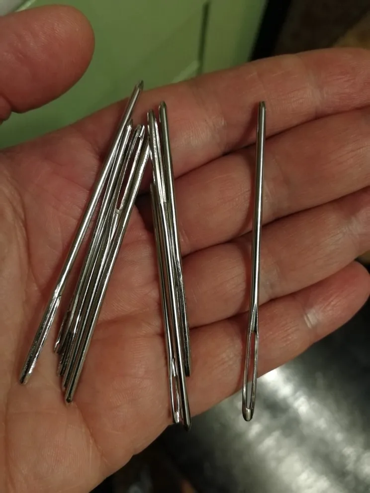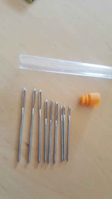 Иголки хорошие гладкие , очень удобно скрыть нитки после оверлока или вдеть резинку .