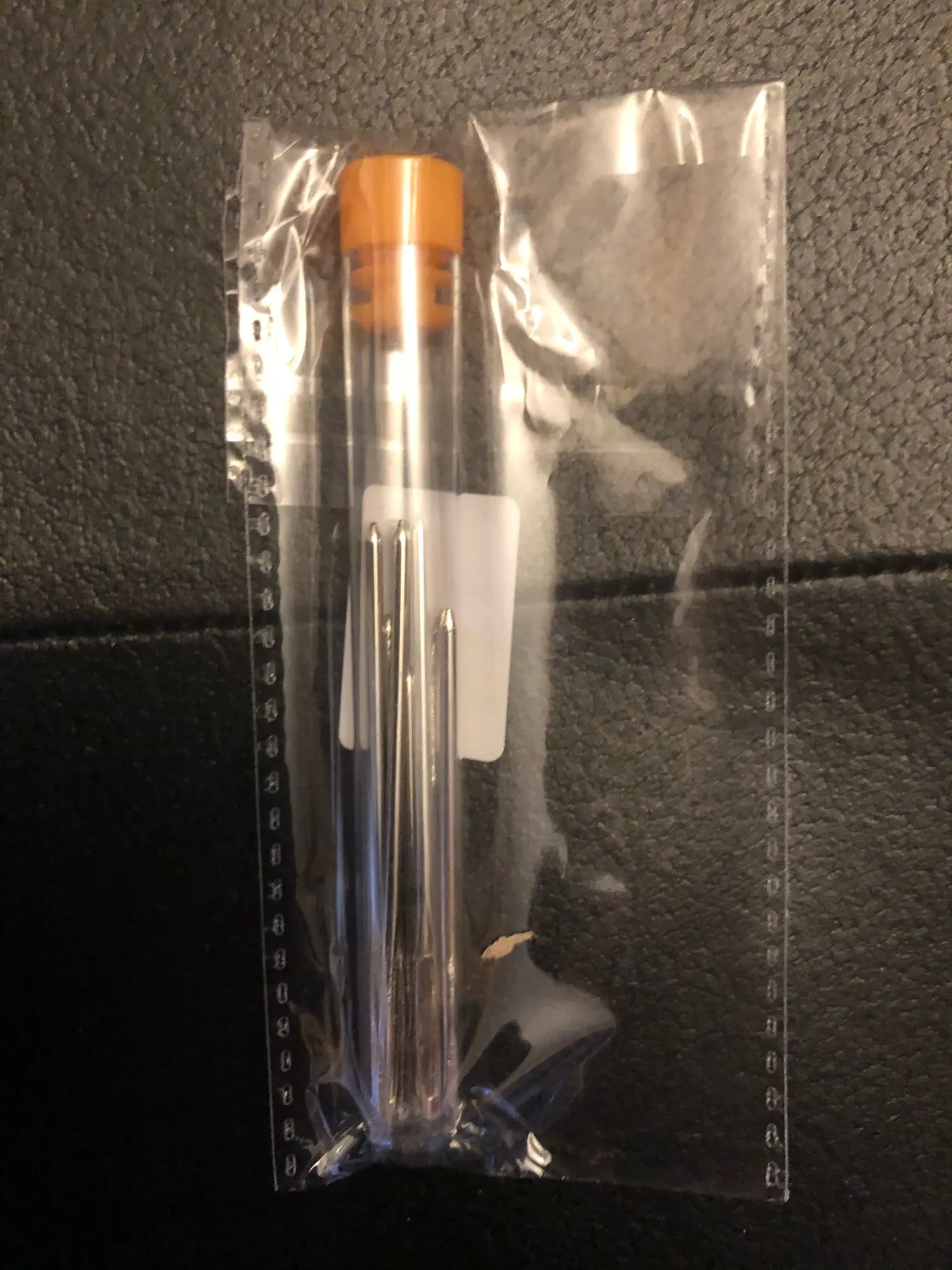 иголки положили в простой пакет без пупырки, поэтому пластиковая туба просто рассыпалась на части, сами иголки такие же как в описании