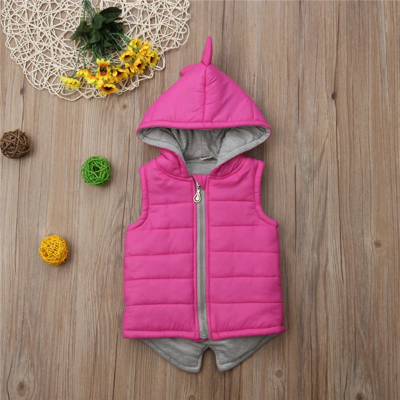 Жилет детский хлопковый, на молнии, с капюшоном, для мальчиков и девочек, зима 2019, жилетка с динозавром, От 6 месяцев до 5 лет