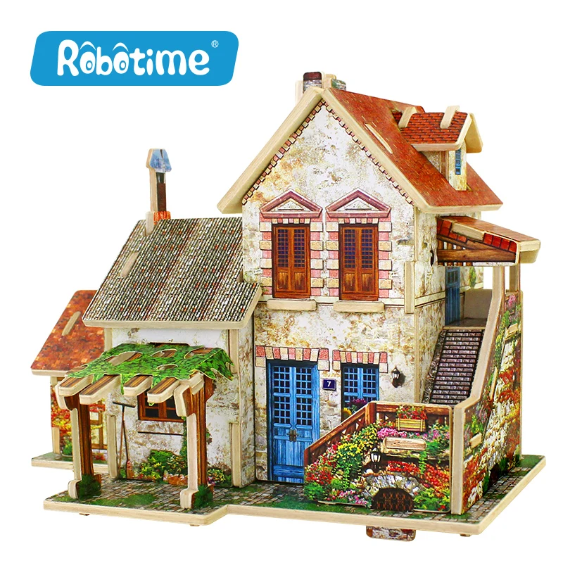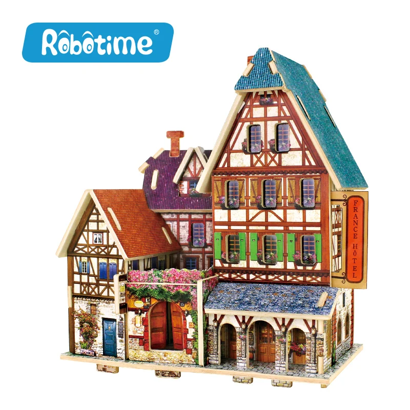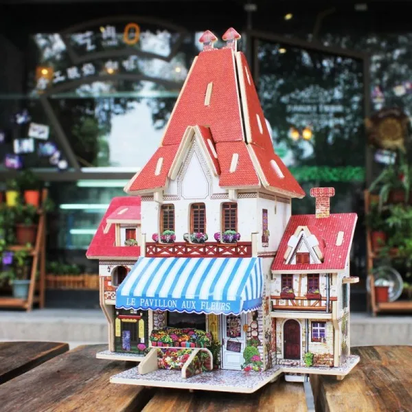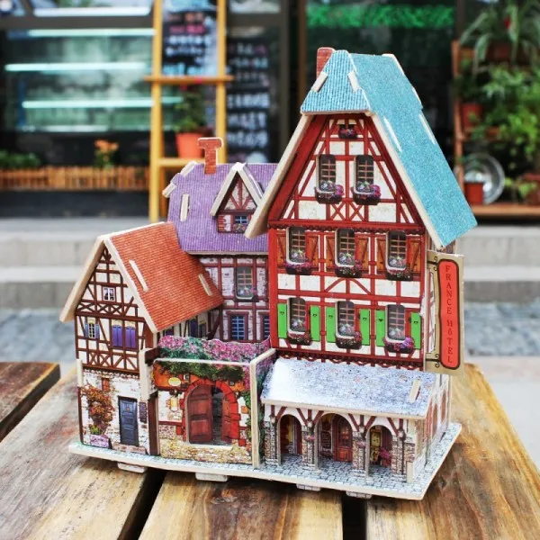 Развивающий строительный комплект для деревянного ремесла, собрать подарок на день рождения, французский стиль, домашний декор, 3D деревянная игрушка-головоломка