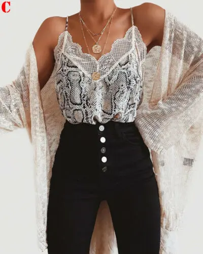 Женский топ без рукавов, Шелковый топ с леопардовым кружевом, Свобо...