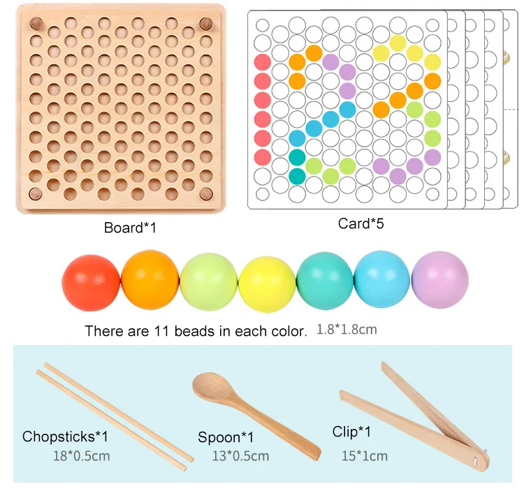Игра Монтессори из бусин для детей раннего возраста, деревянный заж...
