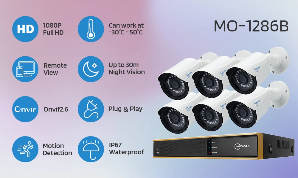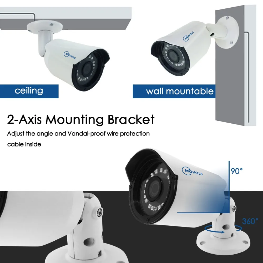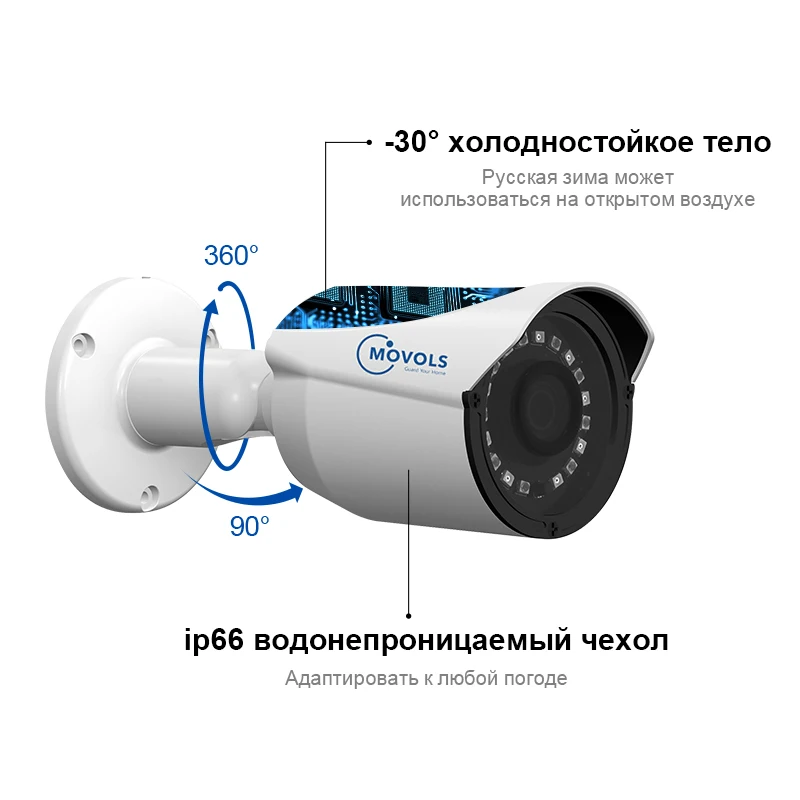 Камера наблюдения MOVOLS имеет прочный алюминиевый корпус и корпус с водонепроницаемой оценкой IP66. Таким образом, вы можете свободно устанавливать его на открытом воздухе, например, в гараже, на заднем дворе или в любом другом месте. Он может выдерживать суровые погодные условия, включая дождь, снег, сильный холод и тепло.