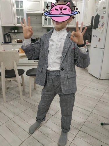 Отличный стильный костюм. Дочь в нем в школе ходит. Ткань качественная, не закатался