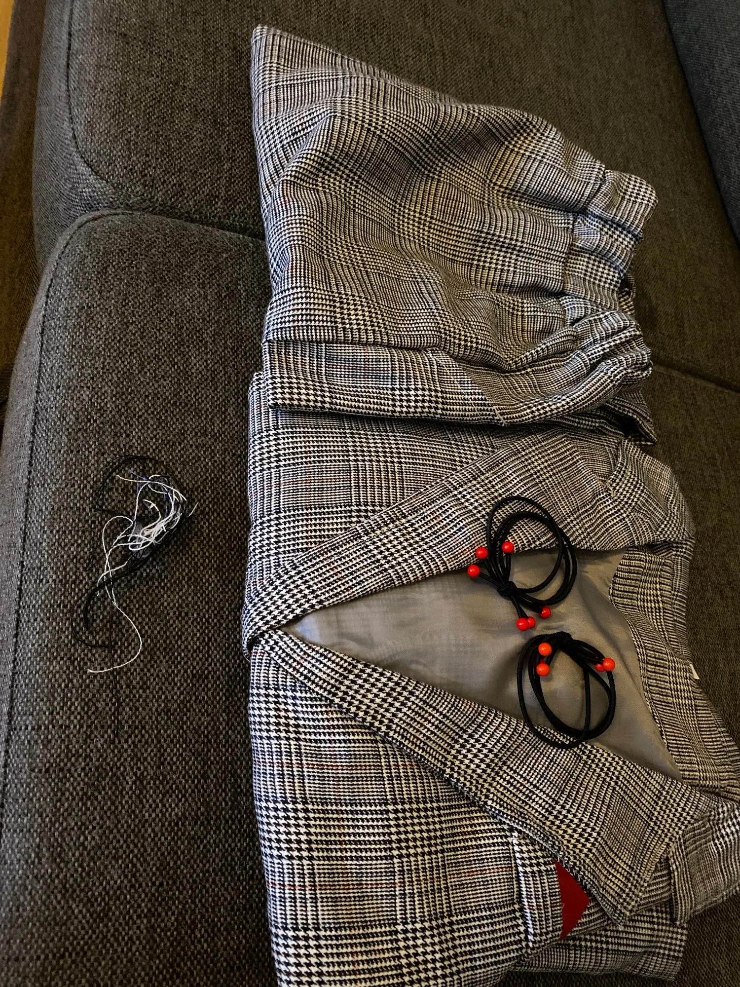Костюм так хороший, только не по фигуре, добавим сами выточки для придания силуэта. А то как мешок.