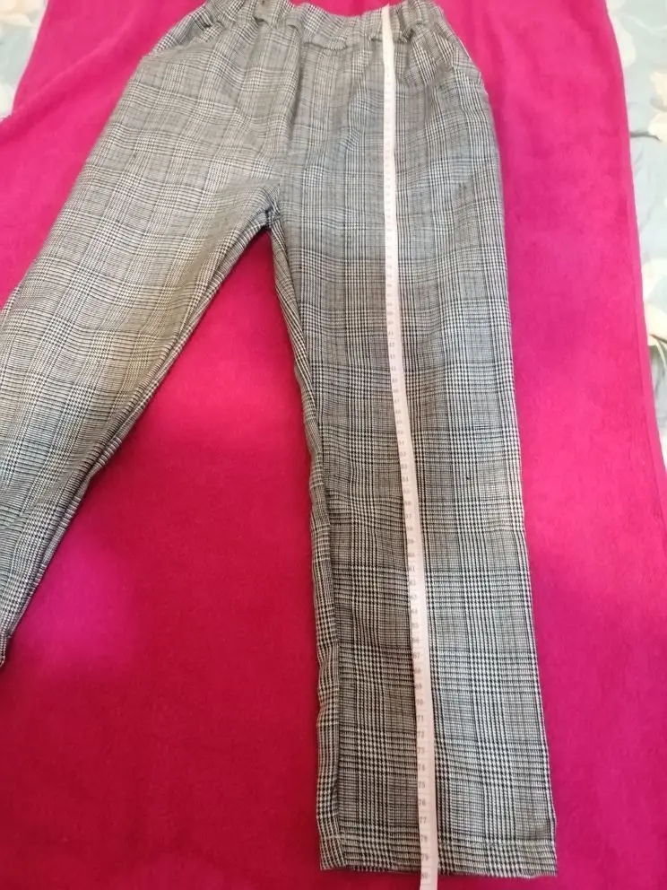 Костюм выглядит как на картинке. Пошив аккуратный, все прострочено, нитки не торчат, ровные рукава и штанины. На брюках вшита резинка. Материал мягкий, приятный на ощупь. Размер соответствует таблице. На мой взгляд, костюм рассчитан только на стройный силуэт. Доставка месяц до МО. В подарок 2 милые резиночки для волос.