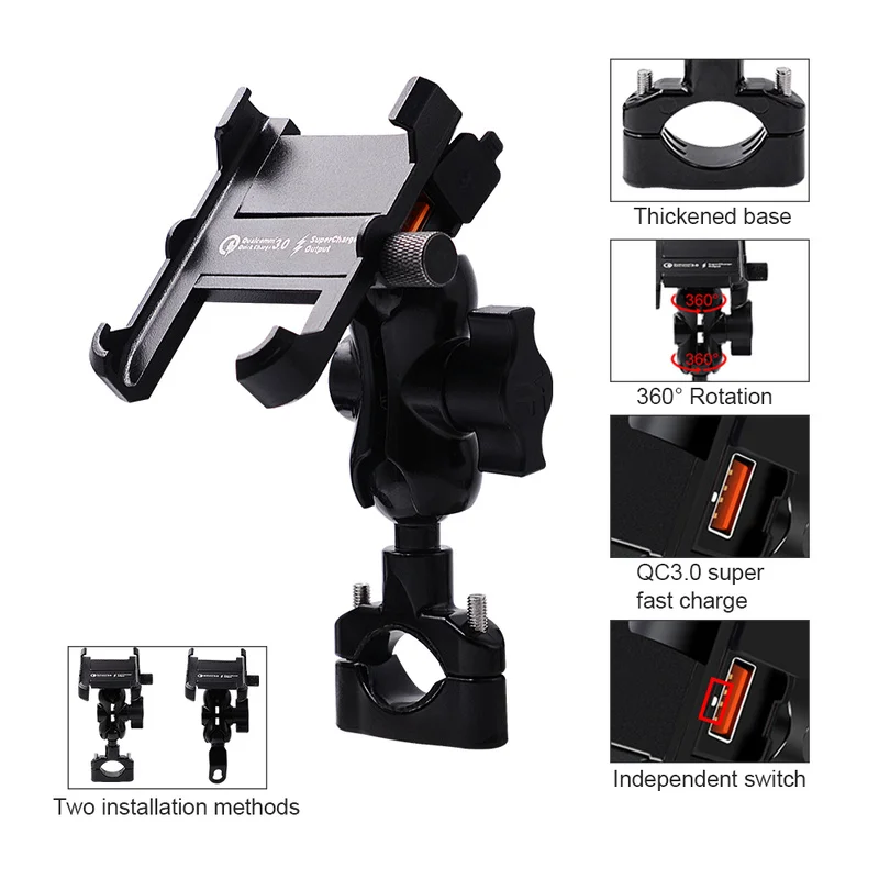 Держатель для телефона с креплением на руль мотоцикла для iPhone X 8 QC3.0, Quick Charge, 4-6,5 дюйма, мобильный телефон GPS