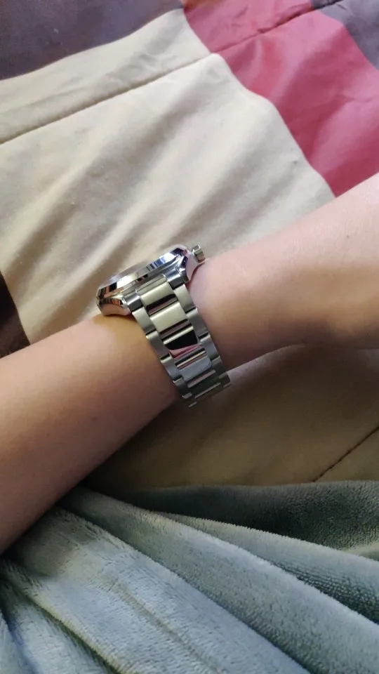 Хорошие часы по цене, manesillas имеют небольшие пятна, но все хорошо в конце дня. И это заводная головка, поэтому у меня есть ощущение, что она промокает.