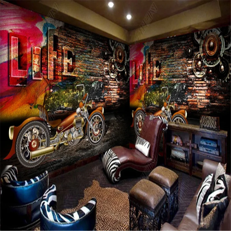 Пользовательские уличное искусство мотоцикл граффити фон настенная бумага 3D рок музыка Ресторан Бар промышленный Декор настенная бумага 3D