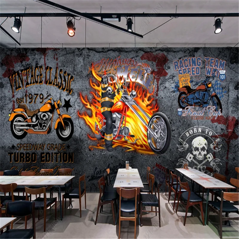Американский крутой Мотоцикл Бар настенная бумага s промышленное украшение Ресторан оснастка фон настенная бумага papel де parede