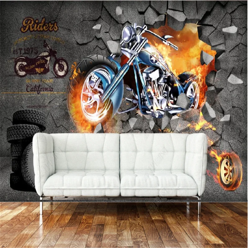 Ретро Ностальгический пламя Мотоцикл Ресторан обои s промышленное украшение ТВ фон настенная бумага papel де parede