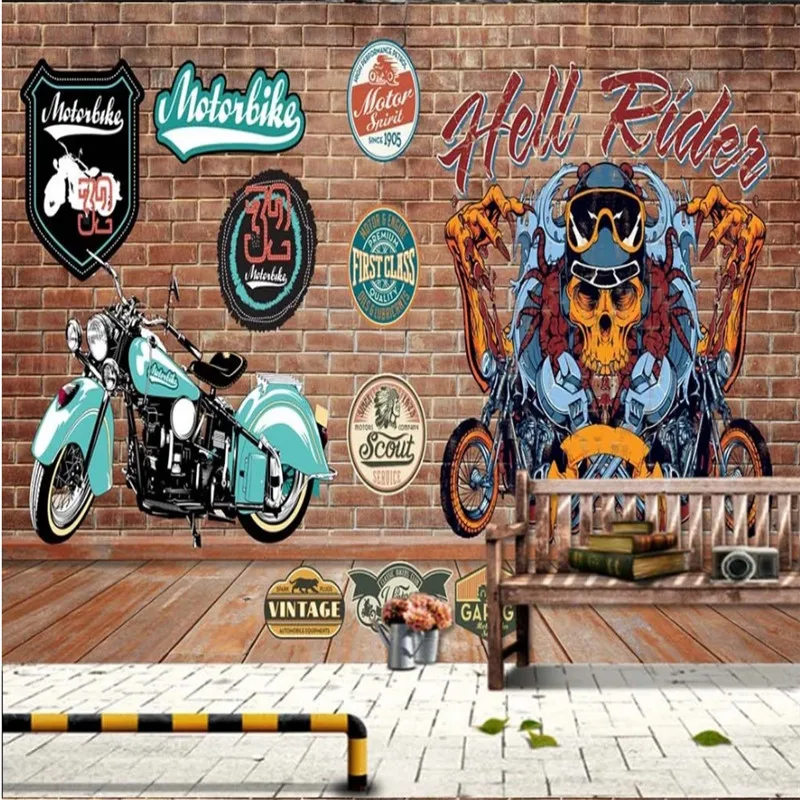 Ретро кирпичная настенная бумага для мотоцикла настенная бумага s промышленное украшение оснастка для ресторана бара фон росписи papel де parede