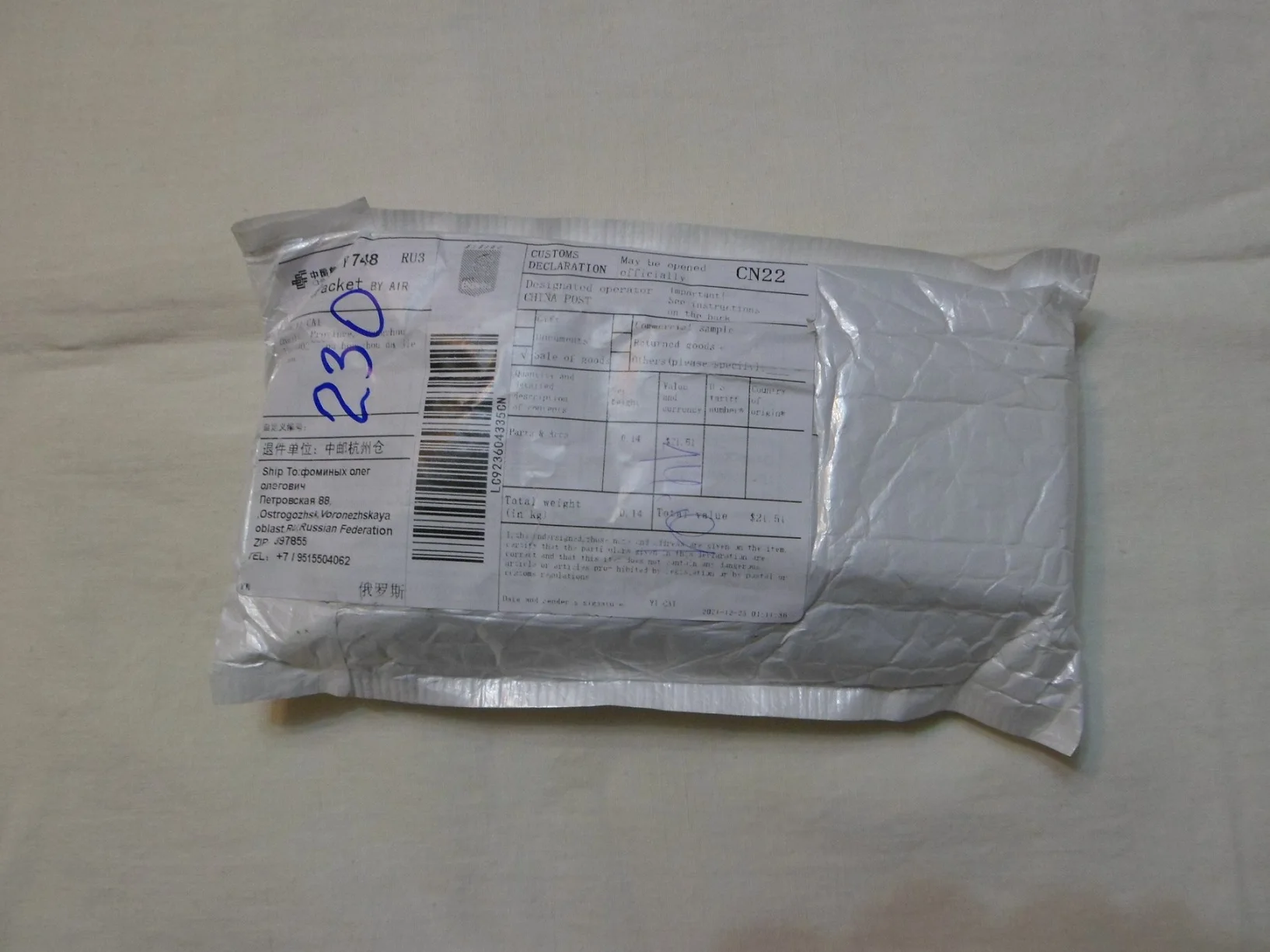 Размер логистики - высота (см)5