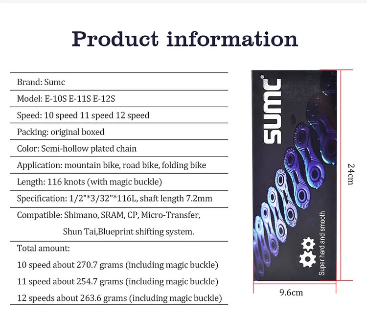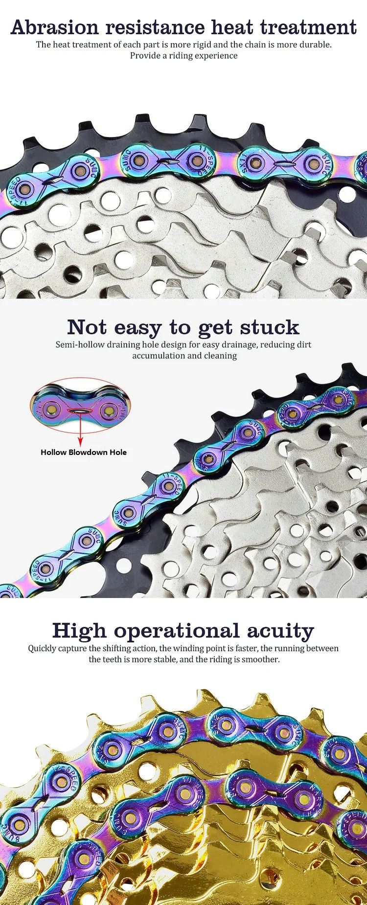 Цепь велосипедная SUMC, 101112 Скоростей, цепь цветов радуги Вт