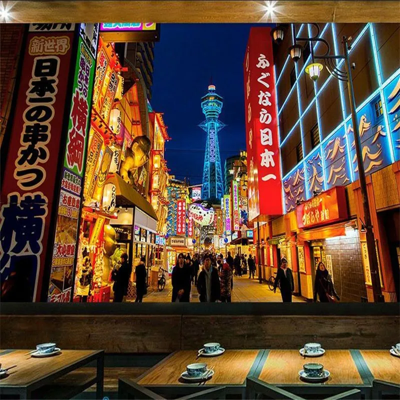 Осака город ночной вид фото настенная бумага японская кухня суши Ramen барбекю Ресторан промышленный Декор настенная бумага 3D