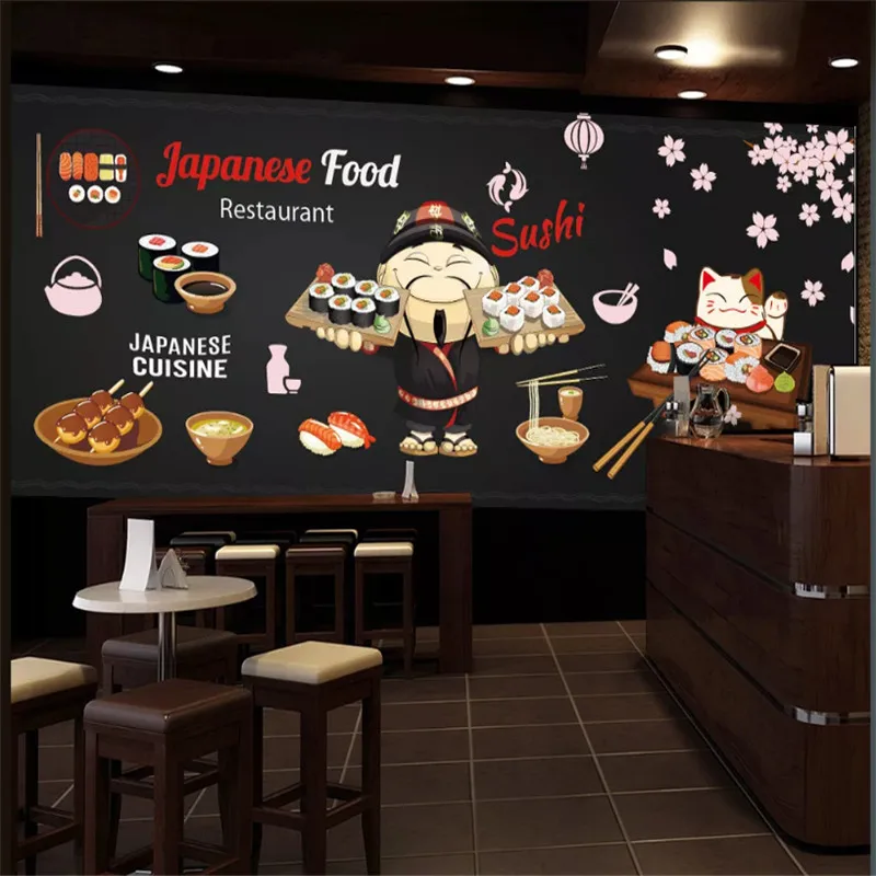 Мультяшный фон для японской кухни на заказ, настенная 3D фотобумага...