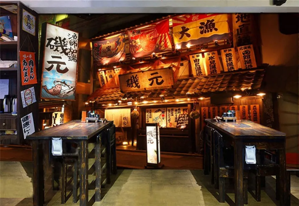 3D японский уличный вид фото обои японский стиль кухня Izakaya суши Ресторан промышленный Декор обои 3D