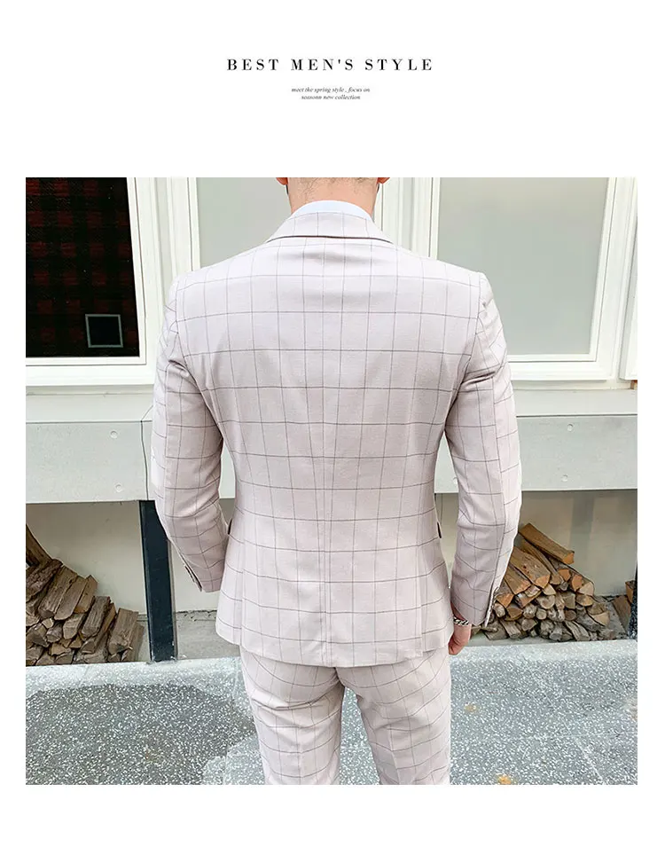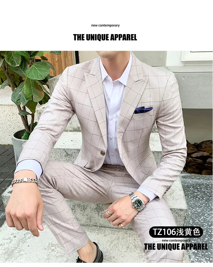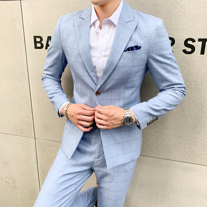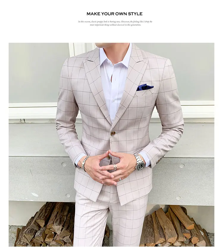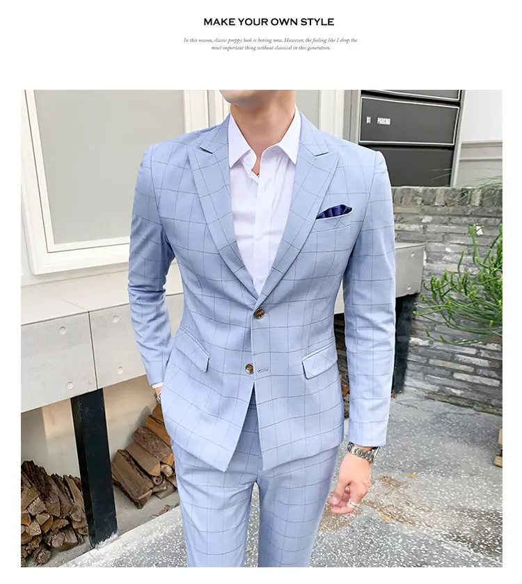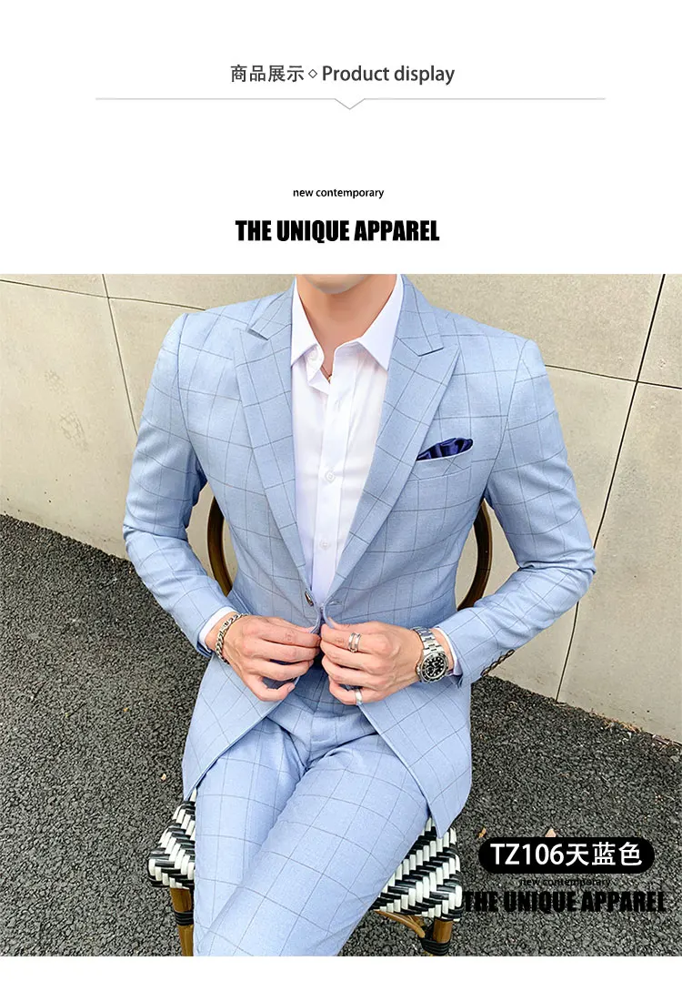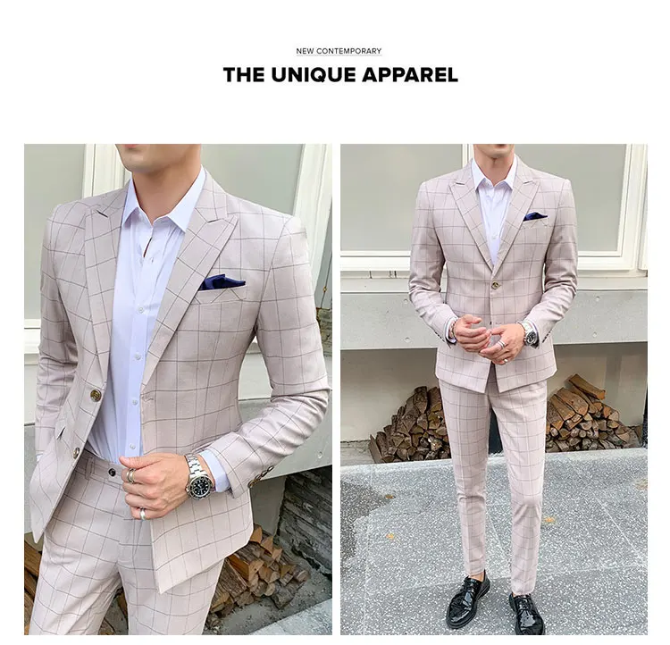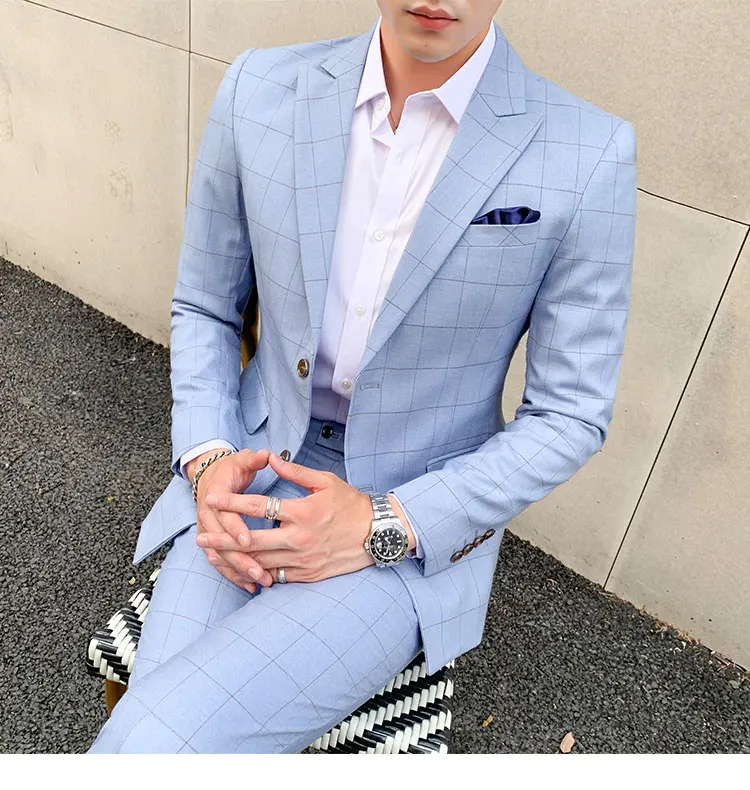 Мужской деловой костюм в клетку, костюм из 2 предметов (пиджак и брюки), новый корейский мужской смокинг, Свадебный костюм для жениха