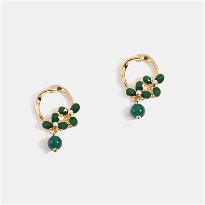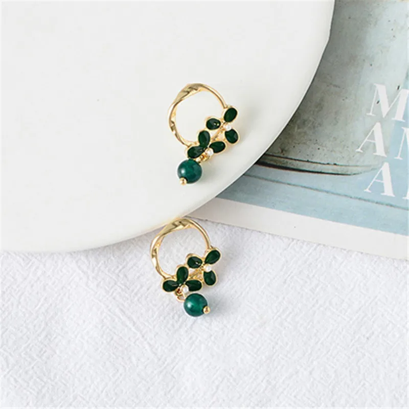 Модные Зеленые стеклянные серьги-гвоздики, винтажные популярные женские серьги в этническом стиле, яркие цветные серьги для женщин